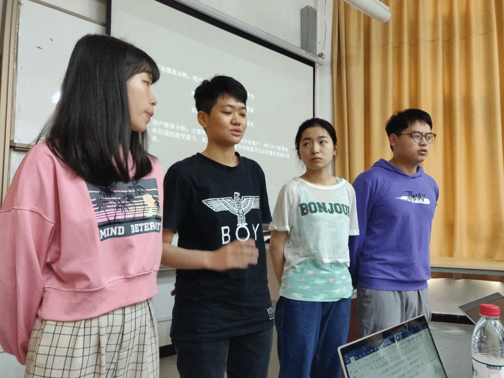 答辩期间,各个队伍通过内容的创新点和发展前景来向观众和评委们展示各自的项目。其中第一支队伍“悦活绿色生态农业旅游发展有限公司”给大家展示了自己项目的规划,即通过联合周边农家乐打造一个更具特色的农家乐环境,为游客定制专属计划;参赛队伍“菓的酒”则通过与当地果农合作在打造优质酒产的同时也带动当地经济发展;参赛队伍“享驾车”驾培软件致力于打造从学车到买车一条龙服务的产品生态链;参赛队伍“时毛”上门理发平台为客人们提供优质上门理发服务…