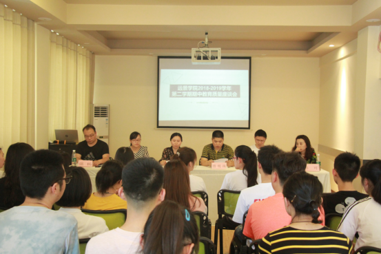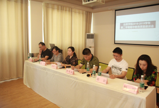为进一步强化教学管理,提高我院教学质量,营造良好的教风、学风,远景学院2019年4月25日15时在C6茶话室召开了2018--2019学年第二学期期中教育质量座谈会,应邀参会的有执行院长皮若兰,学工副院长曾明珠,教研室主任强杨、彭可,教务处教务科科长卢中玲,图书馆李臣以及学院师生代表。座谈会由副院长曾明珠主持。会上与会领导嘉宾围绕同学们所收集的意见建议进行了充分的互动交流,给同学们进行答疑释惑。