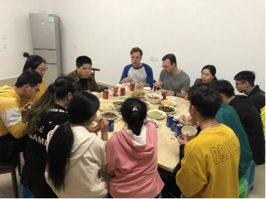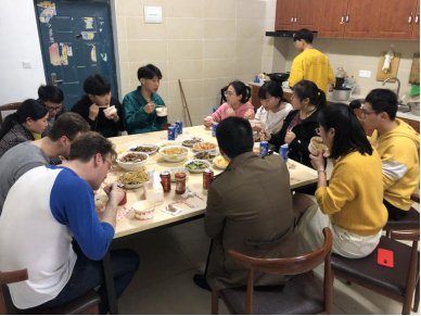 因着远景学院独特的培养模式,所以学生不仅在学习方面秉承“独立之精神、自由之思想”,同时在生活中也充满热情,不断培养自己学会学习、学会工作、学会生活。3月27日,远景学院2018级的几名同学利用书院便利的厨房条件,自己动手准备了一桌子的菜,邀请皮若兰院长、曾明珠副院长、外教peter和他的双胞胎兄弟一起在宿舍楼的三楼厨房一起共进晚餐。简单的饭菜,却因同学们的用心变得异常可口,院长们和学生们团坐一桌、边吃边聊,从不同的角度谈到学生培养,谈到公共空间的借用、使用、管理,以及同学们生活中遇到的一些问题等,场面像极了一家人。