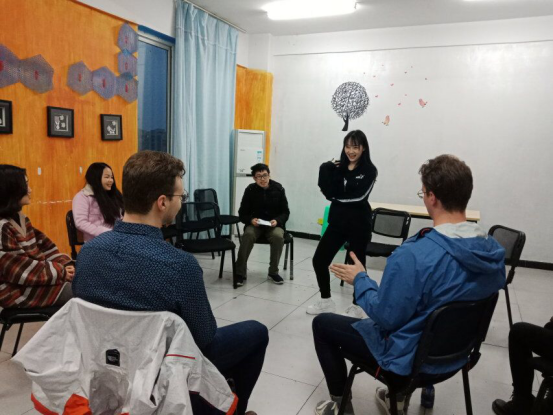 活动正式开始前,同学们向Peter和Nick的到来表示了热烈欢迎。Peter为了让同学们打破尴尬,彼此熟悉,也为了让同学们尽快进入英语状态,向同学们问候了周末,并抛砖引玉聊了他和Nick的周末。然后,同学们也开始交谈自己的周末,有去户外赏花的,有去游泳健身的,有呆在寝室学习的,听起来都还算充实。其中,还有周末去练习跳舞的,老师和同学听了很是感兴趣,而那位女同学也比较活泼,即兴地就给大家展示了一段俏皮性感的爵士舞,这一表演一下点燃了现场的气氛。