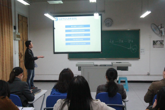 人才培养,关键在教师,远景学院于2019年3月21日下午四时,在菩提书院多功能教室四展开关于“四位一体模式对大学生职业生涯规划的理解”教师培训会。此次培训会的主讲人为2016级辅导员刘英春。执行院长皮若兰、学工副院长曾明珠、远景学院语言与社会科学教研室主任李梦瑶、科学基础教研室主任强杨、艺术与人文教研室主任彭可等各位教职员工参与本次会议。