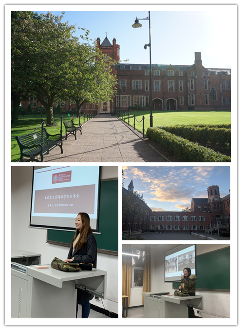 全英文的学习背景、完全自主的游学模式、全新的人文习俗等都是她难忘的记忆。每天都需要与当地学生一起全身心的投入学习,英文的听说读写能力会得到很好的提升;“Erusmas欧盟计划”使不同国家、多文化背景的交流生齐聚一堂,更容易产生思想的碰撞,提升我们的国际视野;当然在圣玛丽学院的选课也是非常自由很吸引人的,比如爱尔兰历史课程和爱尔兰舞蹈课程就让交流生们更快地了解和体验到当地的特色文化;在紧张学习之余,当然不能错过欣赏贝尔法斯特市区的人文景观和自然风景,还有令人印象深刻的到院长家做客的经历。“We worked to live not live to work”是圣玛丽学院院长送给两位交流生的人生感悟,亦或是未来的期盼。也许现阶段,作为大学生的我们仍然在寻觅着自己的未来目标,或迷茫,或坚定,但是我们所追求最终目标,难道不是做生活的主人而不被生活奴役吗?这样的人生观需要我们在成长和不断的努力奋斗中去思考和领悟。