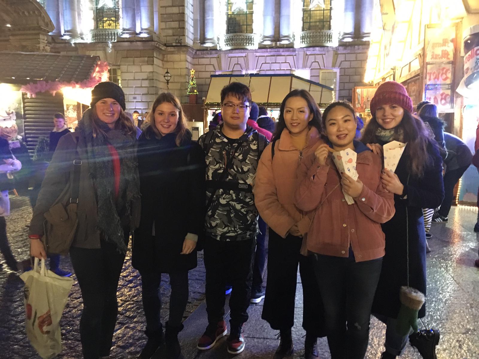 夜幕降临,我们相约一起逛市政厅的集市,站在寒风中吃热腾腾的食物。集市里暖黄色的灯光在黑夜里显得格外的温暖,与朋友们分别的拥抱也抱得更加的用力。不知再见是何时,拥抱的这一刻就更加弥足珍贵。