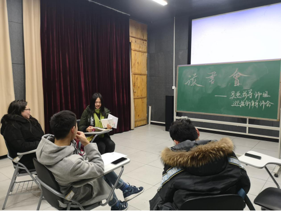 2018年12月28日晚上7点,远景学院吴慈荷导师组的2017级同学们,在电影室一举办了迎新年读书会分享会。同学们早早地来到电影室一后就一边简单的布置场地,一边互相问候祝福,吴老师也趁这机会了解了同学们期末的复习备考情况,并鼓励大家好好复习,努力取得优异成绩。