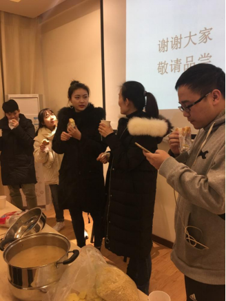其中,来自新疆的张渊同学也向我们分享了一些新疆的饮食文化,她告诉我们,新疆是个多民族聚居地区,人们由于民族不同,信仰不同,饮食也很不同。过去经济不发达,物质匮乏,处于游牧经济中的少数民族以肉食、奶食为主,米面居于次要地位,很少吃蔬菜。因此,乌兰老师带来的内蒙古奶制品也让她想到了家的味道。