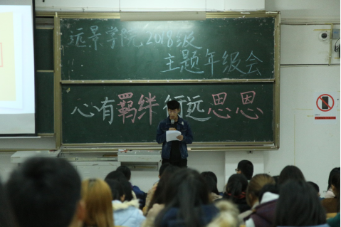 为更好地培养学生树立感恩意识,配合着十一月的“感恩节”,远景学院2018级五个支部分别开展了富有支部特色的“感恩”系列主题支部会,同时,为增强仪式感,会后同学们分别通过视频、书信等方式传递了自己的感恩之情。并在家长和同学们的支持下,于2018年11月25日下午14:30在3102教室举行了“心有羁绊,行远思恩”主题年级会。