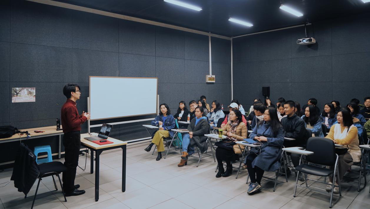 杨老师用生动形象的语言讲解了《冬去冬又来》中人物及人物的关系线、时间空间的存在逻辑与依据。该电影的主创对于电影质量的严苛要求也深深的感染着在场的每一位专业学生和电影爱好者。杨老师讲述了在剧组里面,为了尽可能还原令人信服的真实空间,创作者们无论从置景还是人物造型等等,都做到了依据史实存在的生活真实作为依据和逻辑基础的艺术创作。杨老师还指出,《冬去冬又来》剧组根据故事发生的时间背景,进行时间上的匹配,故事主人公的出生年月以至于后来人物塑造上也是根据真实计算的时间进行造型。诸多的创作细节和经验,让在座的每一位都感到开拓了眼界和创作格局,并感到受益匪浅。