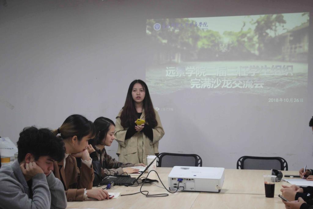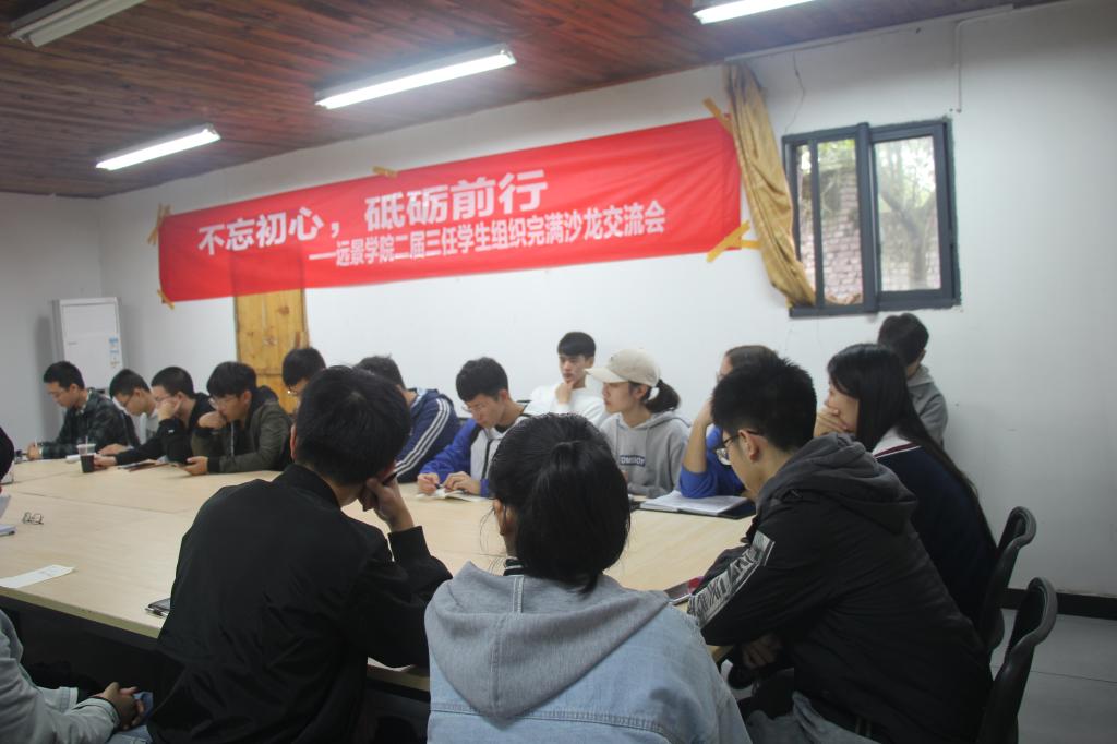 为了进一步完善学生组织工作,远景学院二届三任学生组织于2018年10月26日中午于菩提多功能教室五开展了18-19学年第一期完满沙龙交流会。本次交流会旨在提出自开学以来各部门活动中遇到的问题,以及部门内部工作管理的问题等,大家一起探讨方案,解决问题。