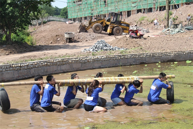 在活动中,最值得的一提的就是我们同学们的分工与合作和团结能力。在魔鬼椽这项项目中,八位挑战者一起进入泥水坑,扛柱子一起深蹲二十个,过程中不仅需要动作一致,还要异口同声的依次报数。这不但锻炼了大家的身体素质还提高了大家的团队合作意识。众人拾柴火焰高,只有在团队的通力合作下,我们才能提高效率与水平。此外在魔鬼掷弹手项目中,我们团队因为分工明确,取长补短,在最短的时间内通过关卡,取得了胜利。