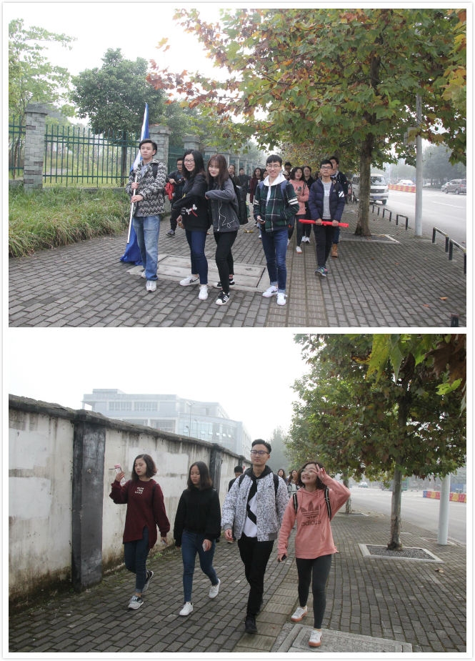 11月26日,难得冬日阳光暖暖,洒上三江之城,远景学院二届二任团总支学生会的全体干部们早早齐聚C6宿舍门口,相约来一场所走就走的徒步旅行。团总支曾明珠书记也应邀与同学们一道参与本次徒步拉练。