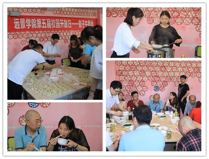远景学院在总结历届校园开放日举办的经验之上,不仅在内容上更新,活动举办的场地也巧花心思,如在在教工咖啡厅展示了远景学院办学五年来所取得的各项成绩和荣誉;远景学院学生社团饕餮川菜社举办了亲子午餐会,川菜社的同学们自己自作了多个美味菜肴并和家长一道包饺子,享受难得的家庭时光;还通过举办社团“完满五年行·缤纷夜”主题酒会,为所有来宾展示了学生多才多艺、自信乐观的一面,还有一位同学在酒会上为母亲送上了一首《当你老了》,作为母亲节的礼物,温情流淌在整个会场。