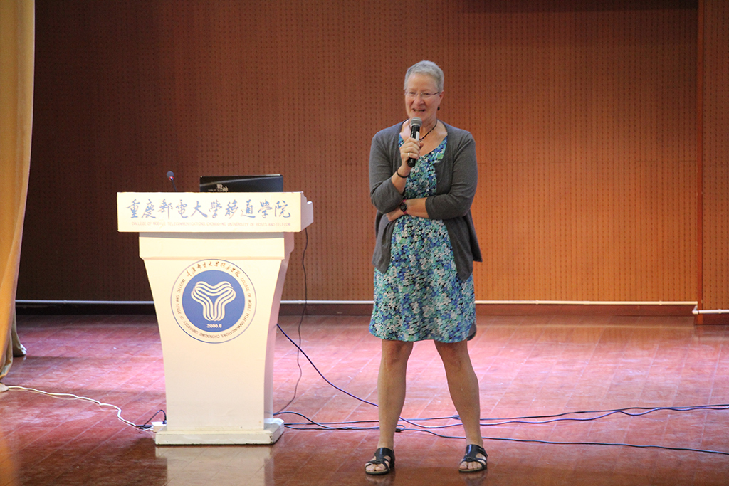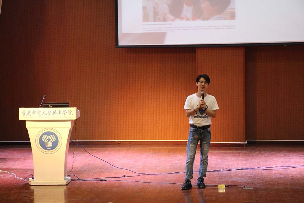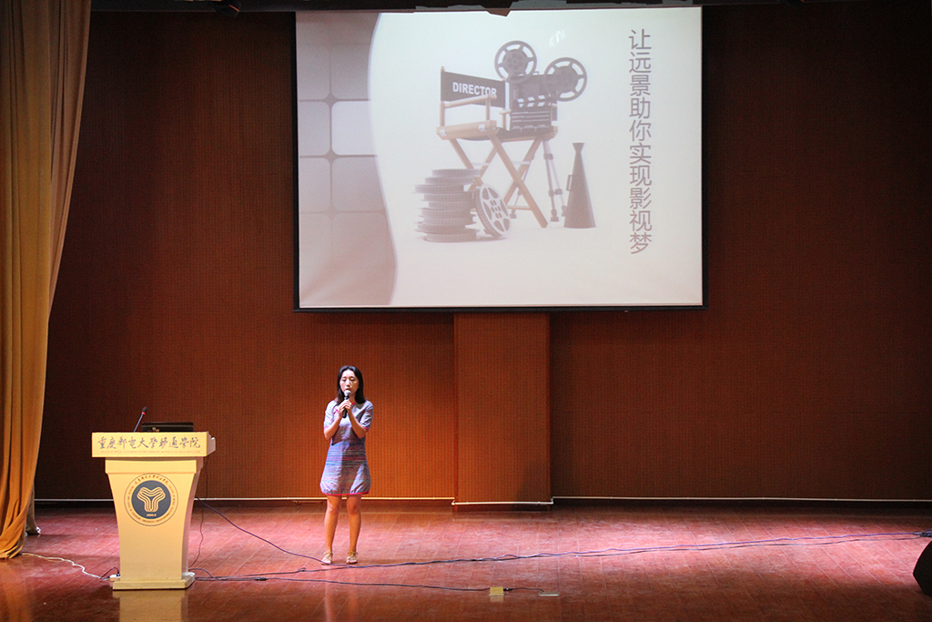 掌声中,陈丁老师走上了会台。陈丁老师先是从远景学院与美国等国家的交流引入,介绍了远景学院即将开设的新课程,鼓励同学们用从国际化的视野欣赏电影。陈丁老师还从个人、学术、国际关系、经济和全球视野五个方面为同学们分析了艺术传媒专业未来的远景。