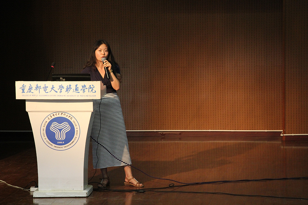 很快就到了优秀教师分享的环节。第一位上台的是毕业于北京电影学院的彭可老师,她为我们分享了她在时光网等传媒工作的经验。彭可老师把专业修养和社会见闻融为一体,丰富的阅历使她的课程别具风格。彭可老师还分享了艺术传媒领域的很多专业知识和实习资源,短短的十分钟,同学们却收获颇丰。
