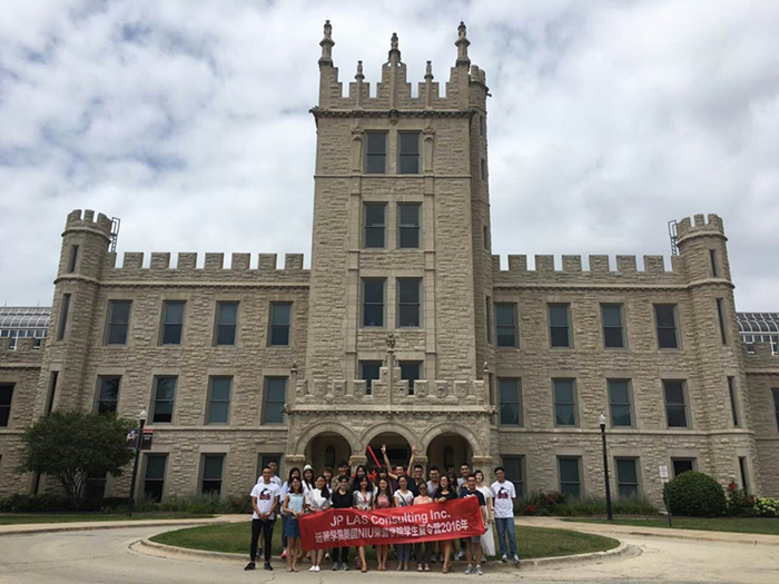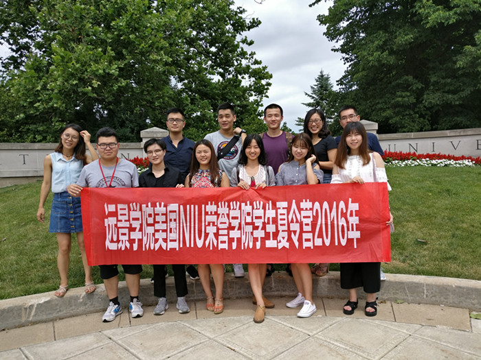 美国时间2016年7月21日下午6时许,经过长达12小时的长途飞行,远景学院NIU夏令营师生访问团带着憧憬与期待,抵达了美国芝加哥市,我们将在美国北伊利诺伊大学(以下简称“NIU”)进行为期十八天的交流学习。 走进美丽的DeKalb NIU位于伊利诺伊州的DeKalb市,前来迎接我们的是今年5月来远景学院交流的Gerri同学,看到熟悉面孔,对这个城市少了些许的陌生。随处可见的美式建筑、大片大片的玉米田、路上时不时出现的可爱小松鼠和兔子都让每一位同学为之惊呼,一路欢笑。经过一个小时的车程,校车停在了china house中餐店的门口,一顿美味的中式晚餐作为十几个小时长途旅程的结束,也代表着此次夏令营的正式开始。