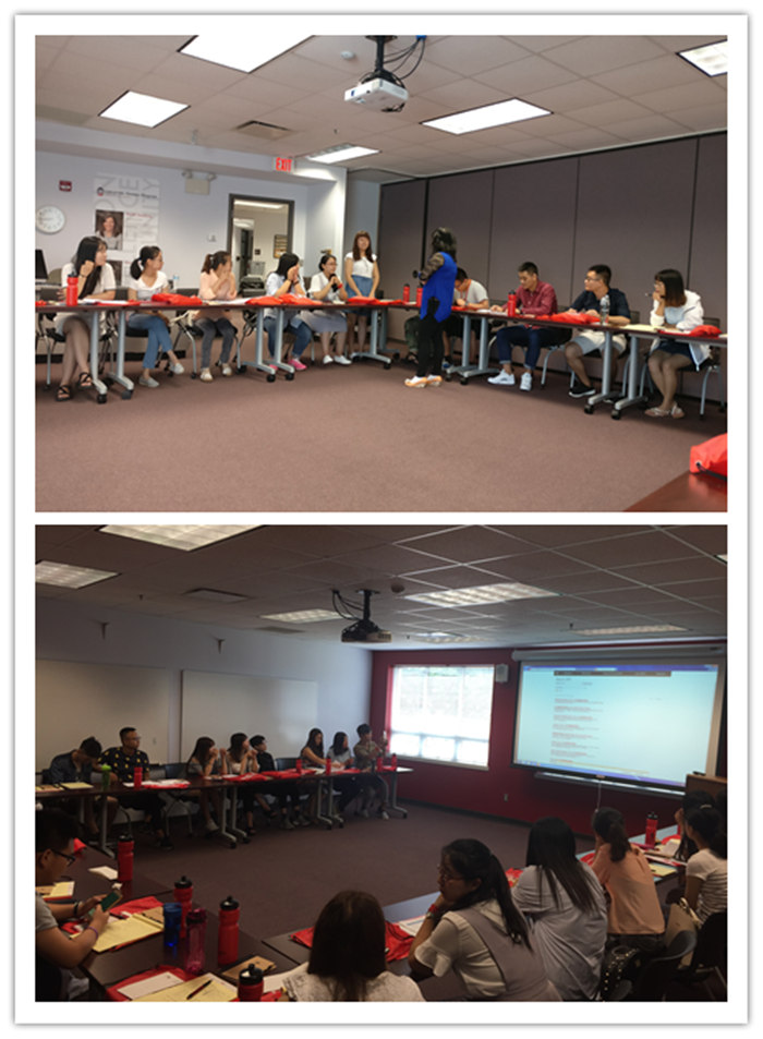 美国文化初体验 经过 一夜的暴雨洗礼,早上起来空气特别清新,今天是正式交流的第一天,早上8:00,由Anastasia老师及华人教师Pingping Ren老师为我们讲述了一堂关于美国的经济及文化的课程。自由开放的教学模式,使我们感觉熟悉而亲切,因为远景学院的课程也是这样的氛围,我们是课堂的主角,可以随时自由的表达自己的观点和看法,紧凑的节奏让我们认真的讨论和思考着中美经济和文化的差异。