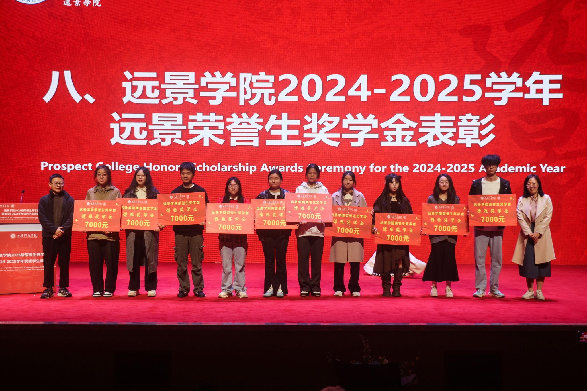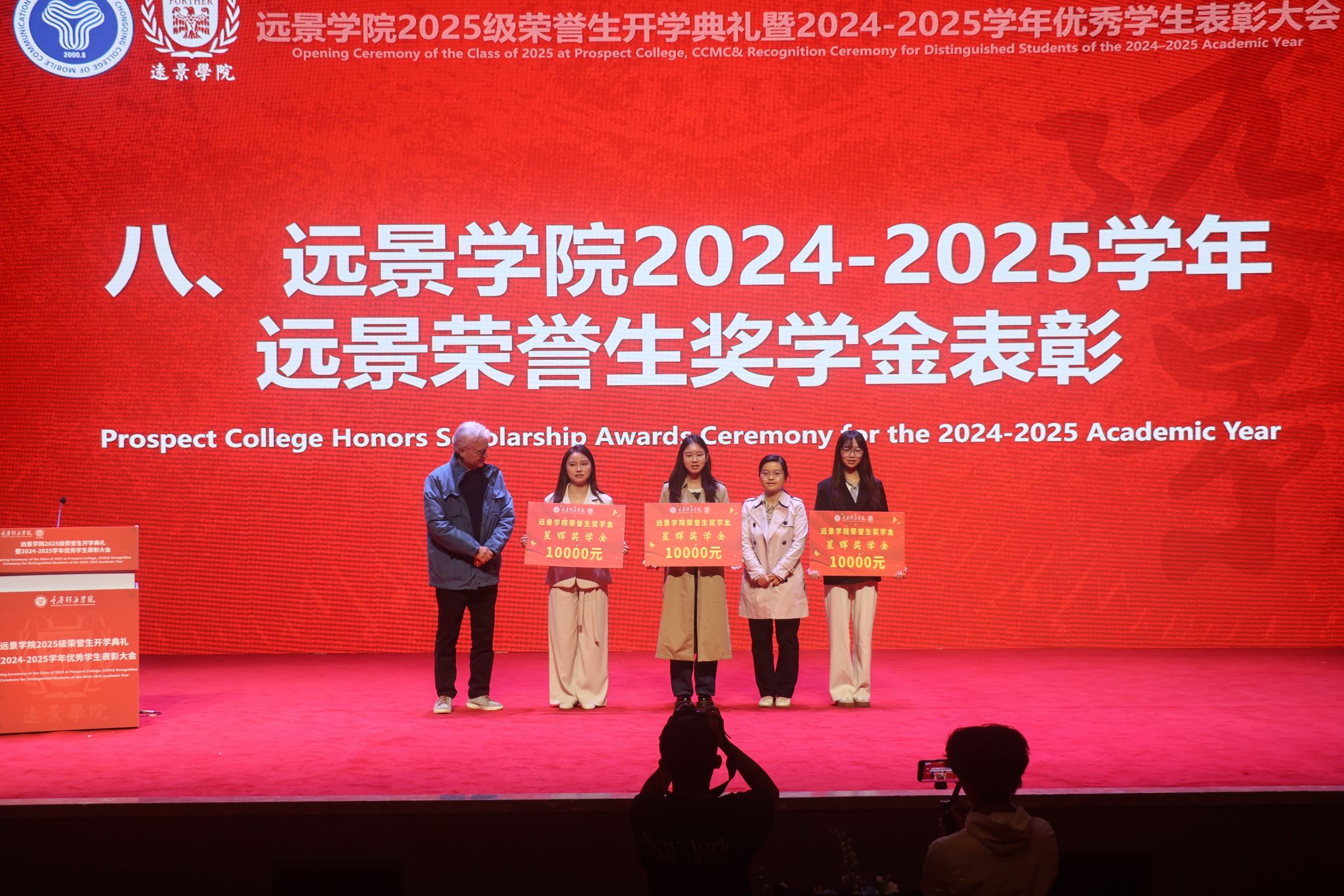 秋意正浓,华章初启。10月26日,重庆移通学院合川校区远景学院2025级荣誉生开学典礼暨2024-2025学年优秀学生表彰大会在缤果大剧院举行。特邀学院荣誉院长、罗斯福精英学院创始人汉斯教授,校长助理刘枚,三校四区远景学院领导班子成员,远景学院全体教师以及2025级全体荣誉生共同出席,见证131名新荣誉生正式加入远景大家庭,开启通识教育新征程,并为上一学年的优秀学子颁授荣誉。典礼由远景学院执行院长皮若兰主持。
