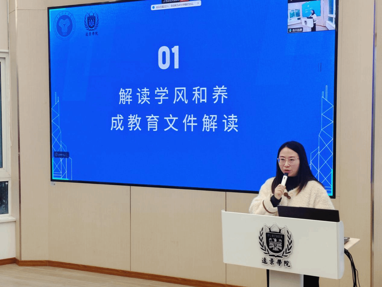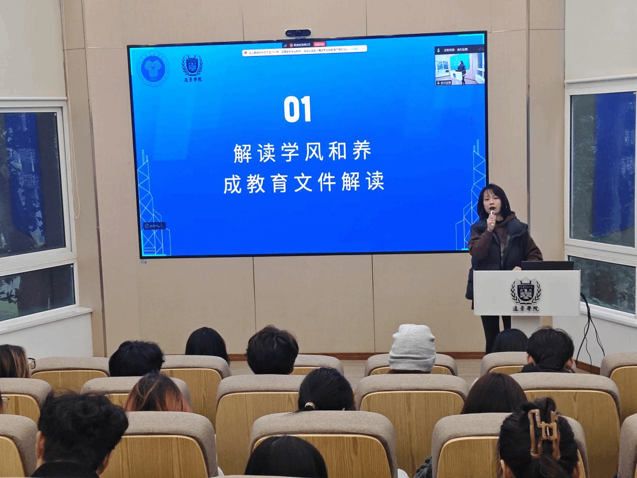 随后,王诗颖老师详细解读了《远景学院“笃学养习·聚力学风”学风建设与养成教育系列活动》,通过强化学生 “勤学、善学、乐学” 的自主意识,激发成长内生动力,引导学生养成终身受益的行为习惯与学习品质,通过多层次、多维度的实践载体,构建全方位学风培育体系。