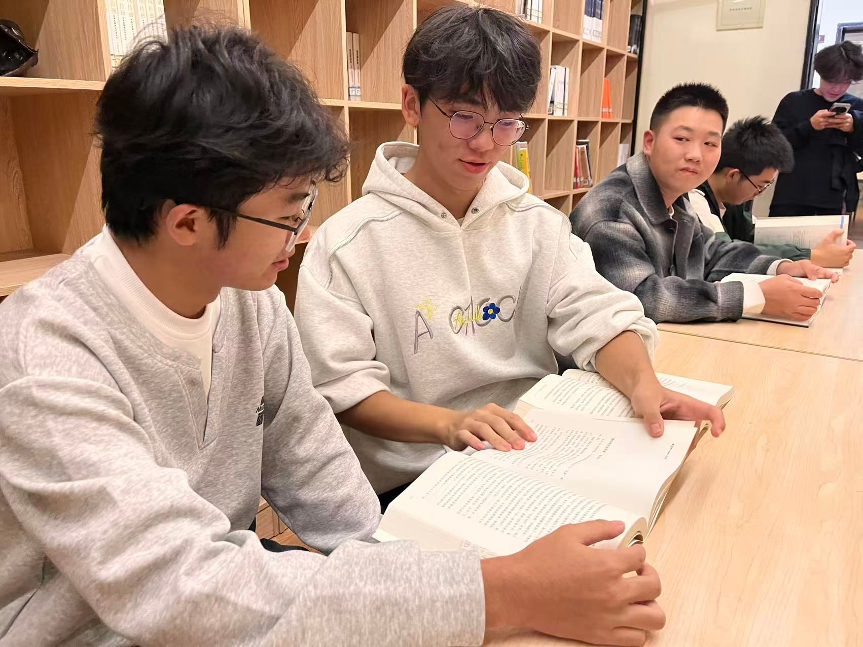 在活动的开始,映入眼帘的是普映蒙老师带领学生品读《超越百岁》,这本书围绕长寿文化、健康生活、生命意义等核心话题来展开,书中融合医学研究、数据统计与个体案例,聚焦“如何健康活到100岁且保持高质量生活”提出:长寿不是被动等待,而是通过科学干预+主动健康管理实现的“可设计目标”。在普映蒙老师的意味深长和细致若微的导读下,同学们津津有味,沉醉其中,极大地激发了同学们兴趣。
