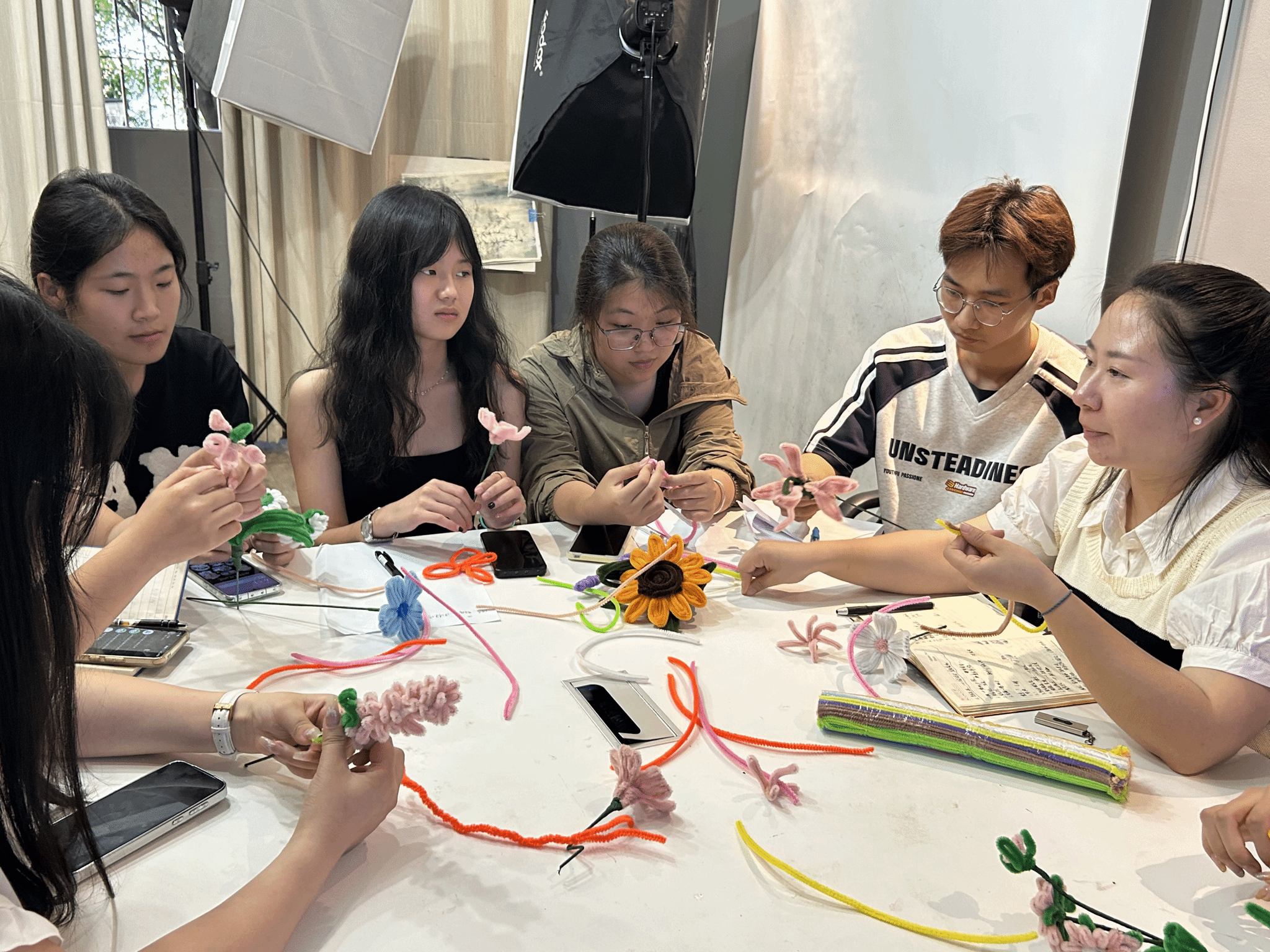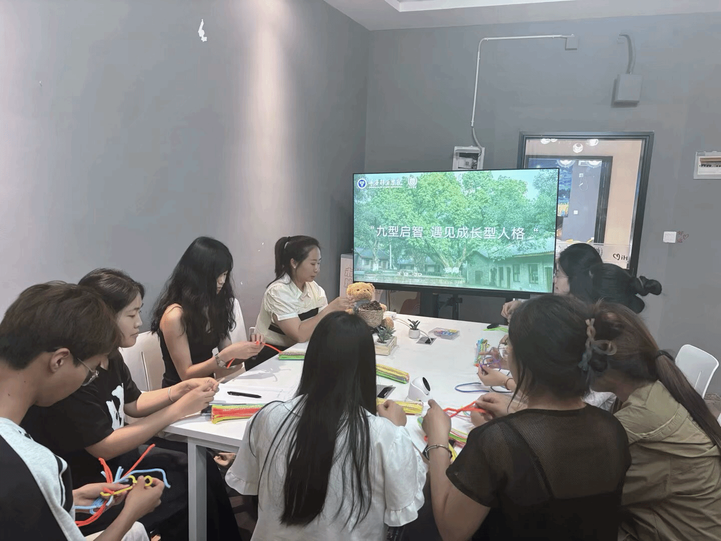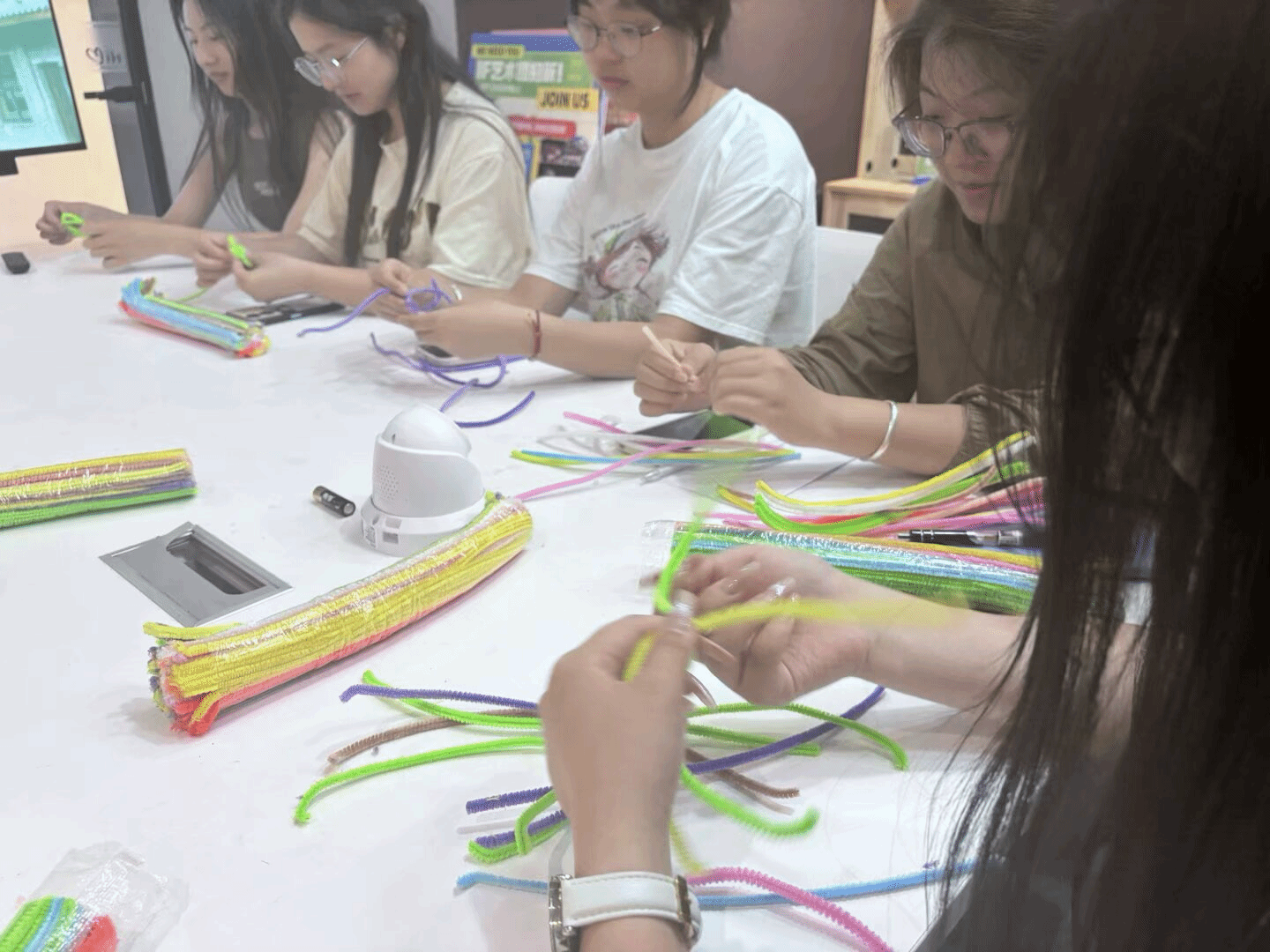 专题研讨结束后,进入“巧手塑心”手花扭扭棒创作环节。工作人员为每位参与者发放扭扭棒材料,大家充分发挥创意,将手中的扭扭棒弯折、缠绕,制作出独一无二的手花。色彩缤纷的花朵在指尖绽放,参与者在动手创作的过程中,不仅舒缓了压力,还通过作品的寓意寄托内心的情感与期望。有的同学将花朵赠予同伴,传递温暖与善意;有的同学将手花作为对自己的鼓励,象征着心灵的绽放与成长。此环节将艺术疗愈与九型人格探索相结合,让参与者在轻松愉悦的氛围中进一步觉察自我,释放情绪。