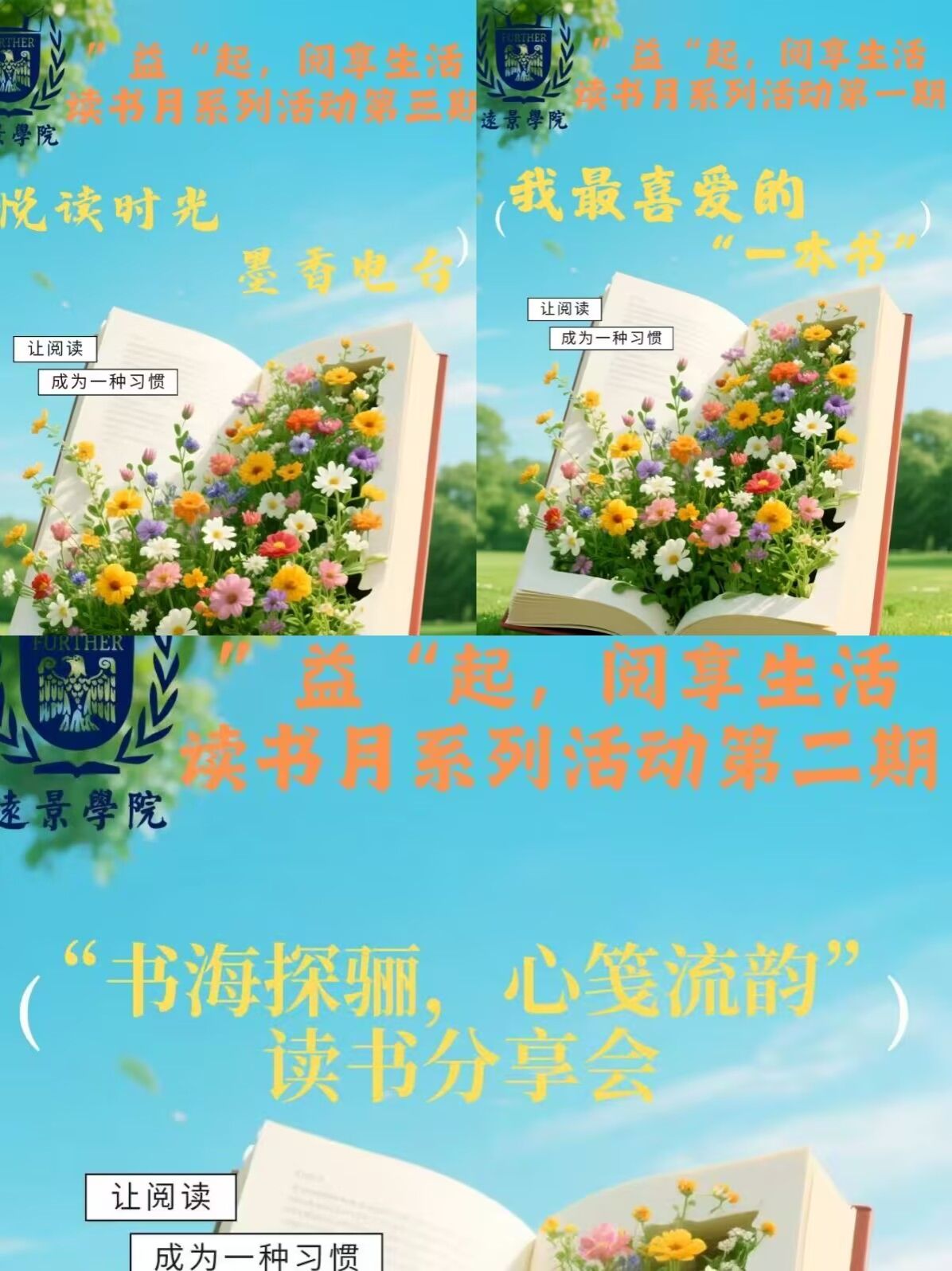 在世界读书日前后,远景学院社团管理委员会推出“益”起,“阅”享生活系列读书活动。通过“我最喜爱的一本书”,以镜头捕捉书籍美学;“书海探骊,心笺流韵”读书分享会,促成深度思想碰撞;“悦读时光,墨香电台”通过声音传递阅读力量等活动以摄影、文字、声音多维形式重构阅读体验,激发参与者感知书籍承载的知识厚度与情感温度,推动书香文化浸润校园。
