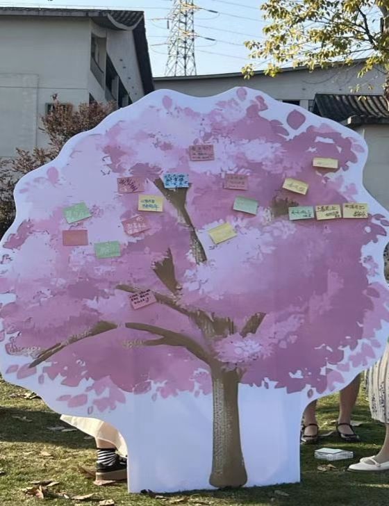 活动尾声,一棵巨型“心愿树” KT 板成为焦点。同学们将写有烦恼、目标或祝福的便利贴贴在“枝头”:“成绩焦虑随风散”“想谈一场不分手的恋爱”“祝奶奶长命百岁”。两米高的亚克力心愿树成为情感集散地,枝头悬挂的数张便签构建青春心事图谱:工科生用函数曲线描绘“恋爱概率”;有人采用三行诗体:“奶奶的药盒/该换成七格装的了/视频时您多笑了一次”。