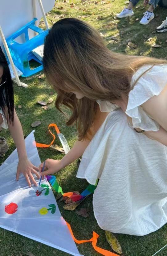 远景学院学工办主任王诗颖老师引导各位小伙伴讲到:“画笔是连接潜意识的桥梁,让情绪在纸鸢上显形,就是疗愈自我的开始。”空白的风筝成为放飞心绪的载体。
