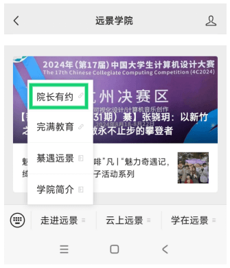 你还在为自己的生涯规划所迷茫吗?你还在对自己不确定的未来所恐慌吗?又或者你在远景学院的学习与生活中还有需要去沟通、去交流的需要吗?远景学院《院长面对面》升级上线了,在这里我们会成为你倾听的对象,也可以成为你人生路上的向导,期待同学们来到这里与院长一对一对话,与院长面对面畅享独属于你的“成长时刻”吧,还等什么,大家赶紧扫码预约吧!