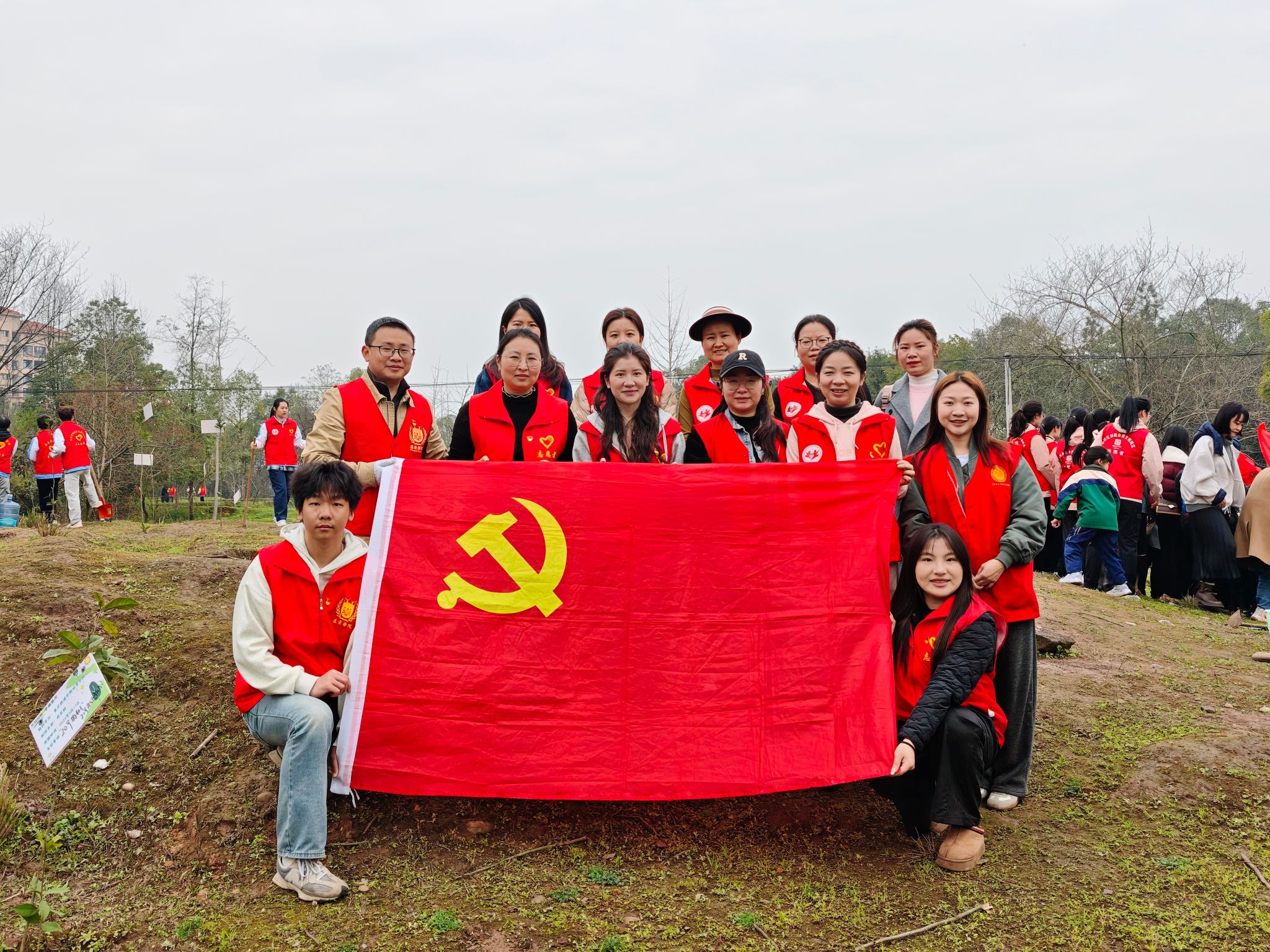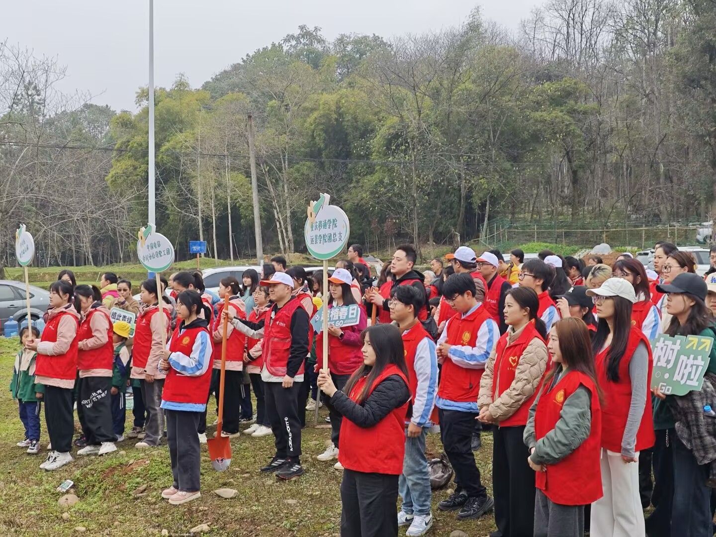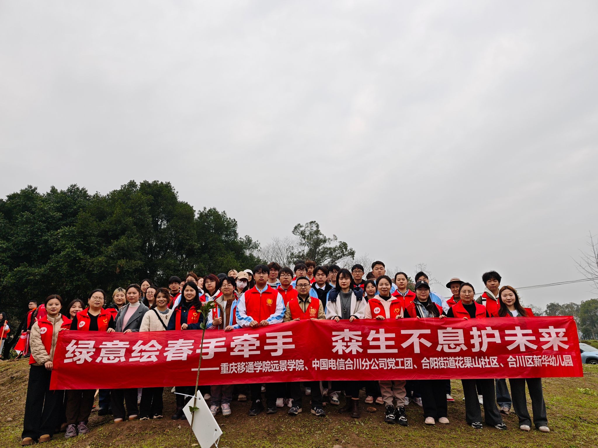 春风拂绿,万象更新。2025年3月11日,由重庆移通学院远景通识党总支师生党员及青马工程初阶班全体成员联合中国电信合川分公司、合阳街道花果山社区和合川区新华幼儿园共计120余人,共赴花果山森林公园开展“绿意绘春手牵手,森生不息护未来”植树实践活动。