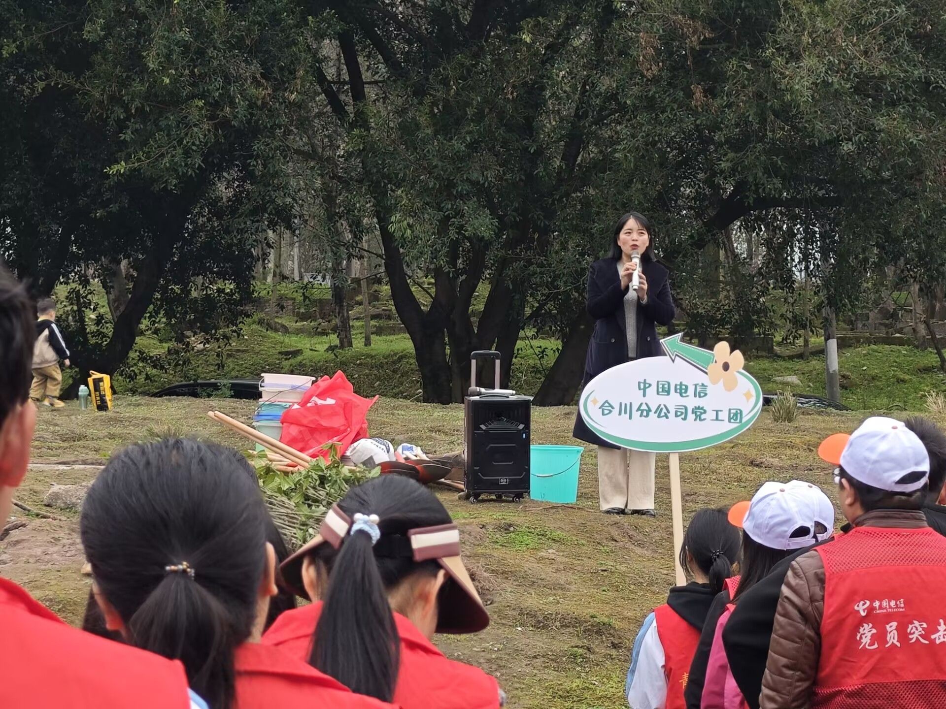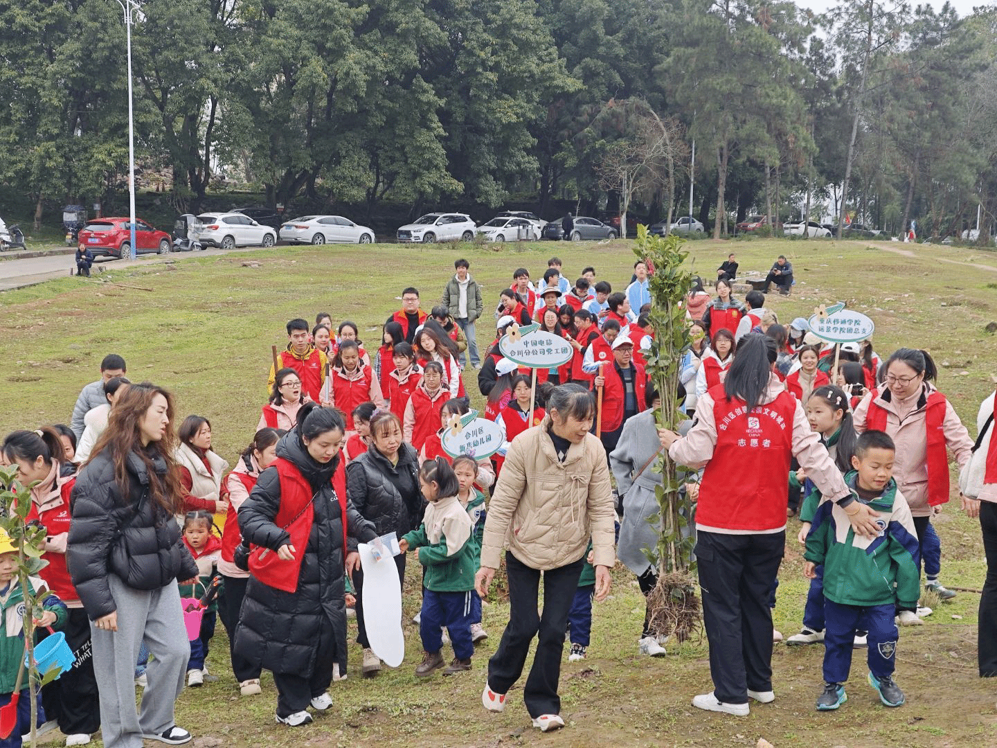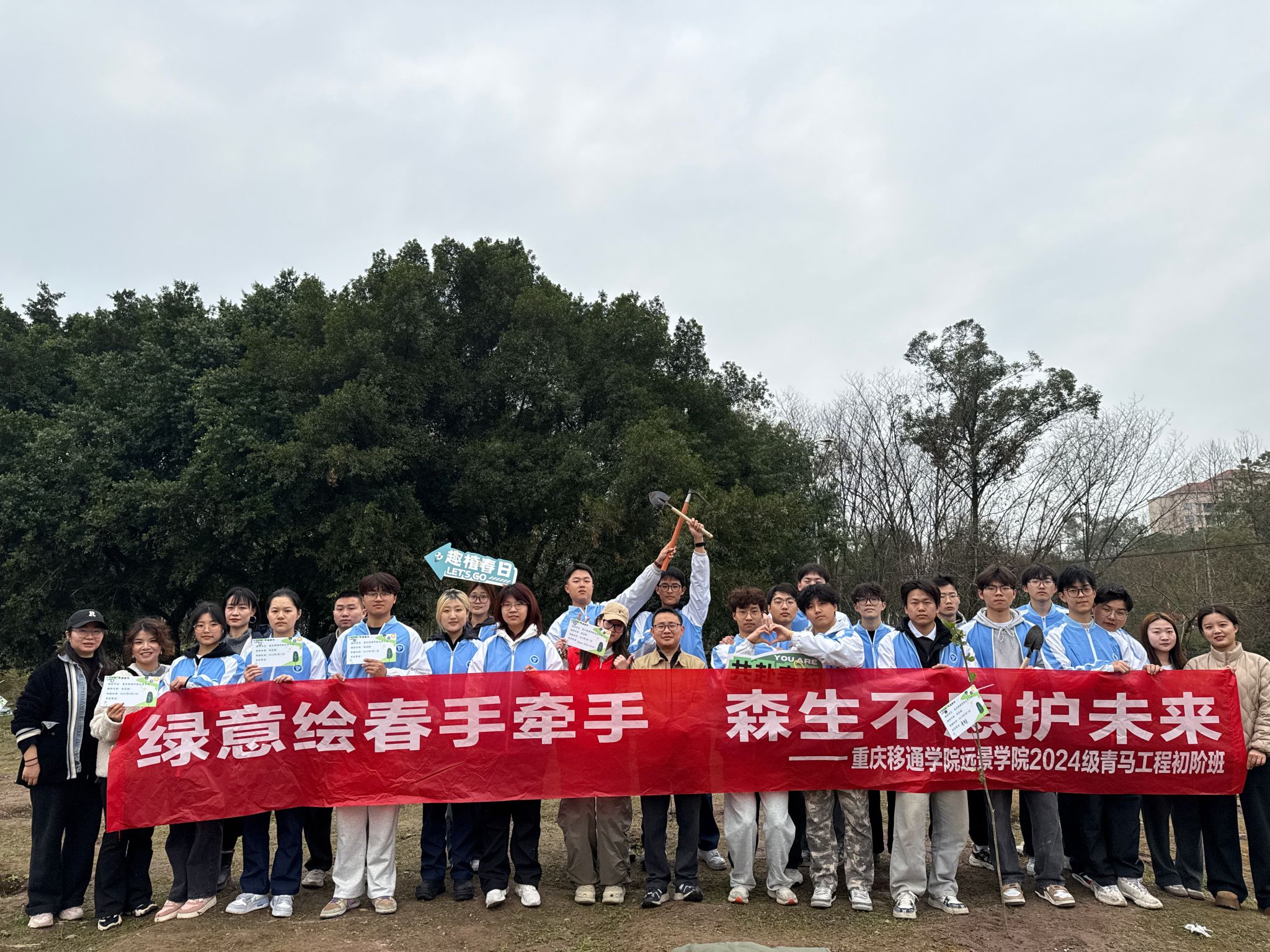 春风拂绿,万象更新。2025年3月11日,由重庆移通学院远景通识党总支师生党员及青马工程初阶班全体成员联合中国电信合川分公司、合阳街道花果山社区和合川区新华幼儿园共计120余人,共赴花果山森林公园开展“绿意绘春手牵手,森生不息护未来”植树实践活动。