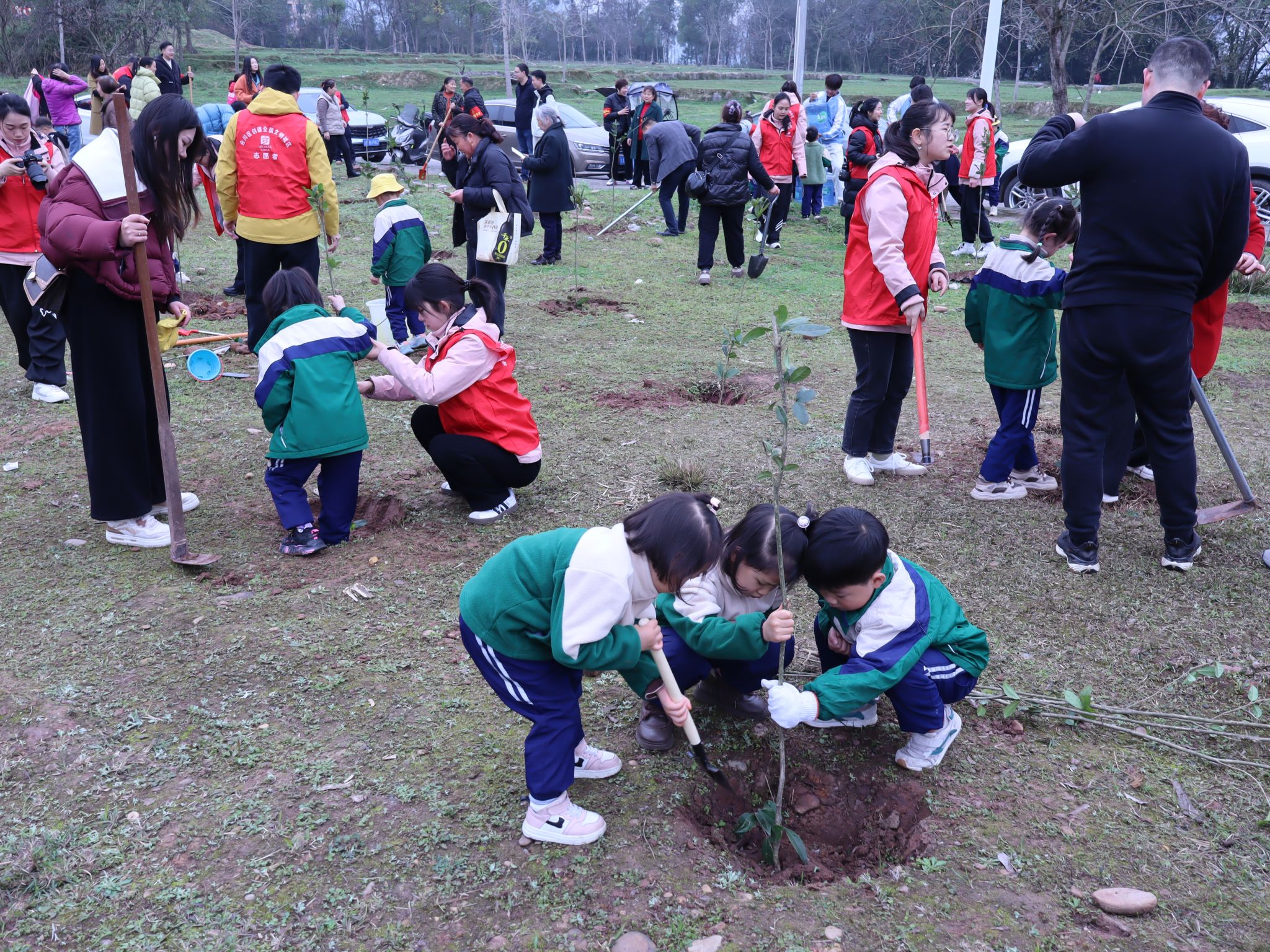随后,参与者们迅速分工协作,投入到这场绿色行动中。挖坑、培土、浇水……大家齐心协力,亲手种下一棵棵象征着希望与未来的树苗。幼儿园的小朋友们虽然年纪尚小,但热情丝毫不减。他们手持笨重的劳动工具,模仿着大人的模样,认真地将一棵棵树苗植入土中。他们稚嫩的身影和洋溢着幸福笑容的脸庞,被相机定格在瞬间,成为这次活动最美好的见证。