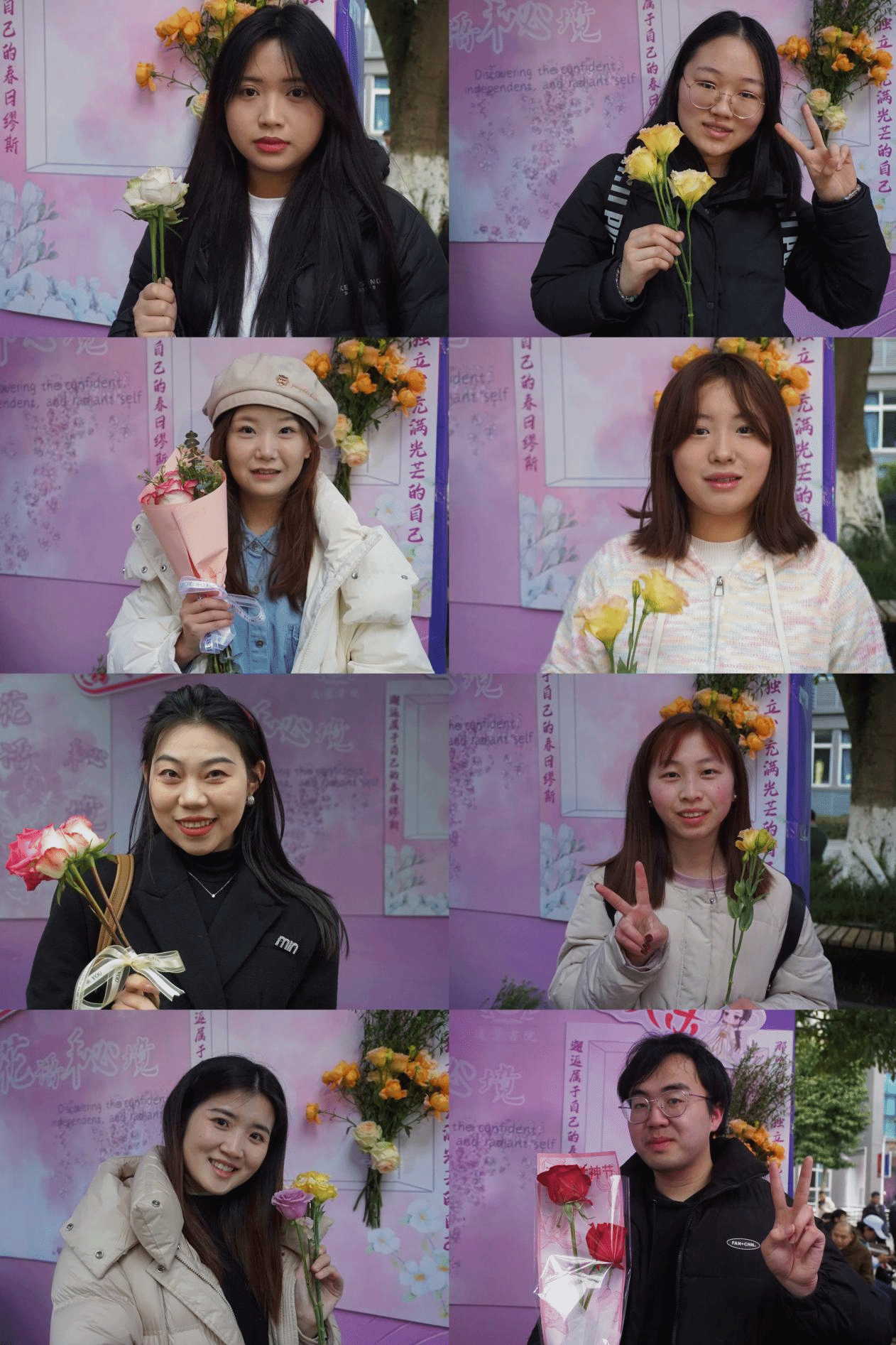 更值得一提的是,现场精心设置的 “春日缪斯” 打卡区,迅速成为记录青春女生风采的热点地标。随着活动的持续推进,打卡区热度不断攀升,吸引着越来越多女同学们前来,感受青春与春日的美好交融。花墙前,女生们洋溢着灿烂的笑容,眼眸中闪烁着独属于此次女生节的欢喜与期待,待工作人员记录下这一个个美好的瞬间,也为大家留下了此次“花语秘境”最美的景致。各色鲜花相互交织,与女生们灿烂的笑容相得益彰,共同勾勒出一幅绝美的春日画卷 。