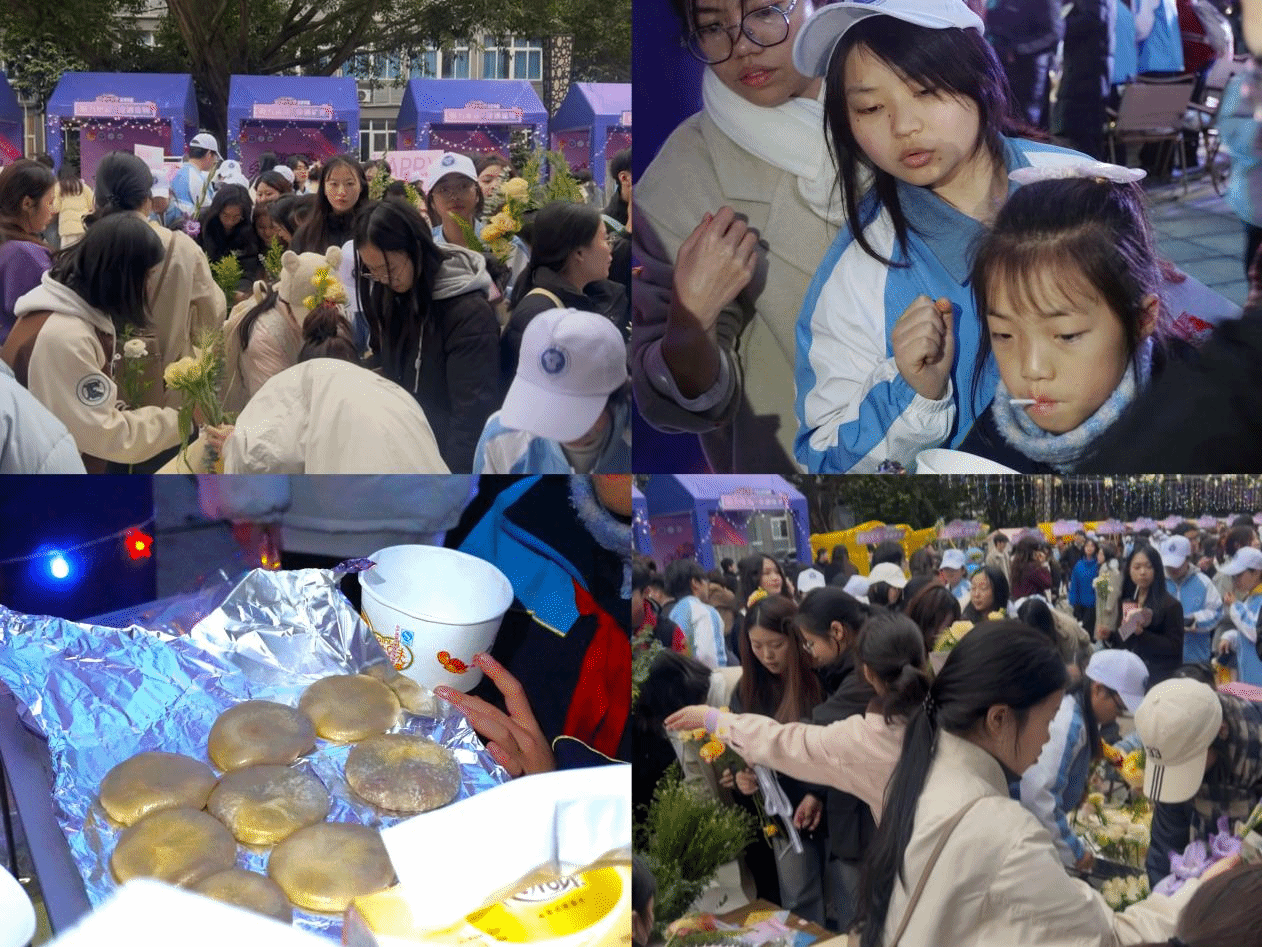 同时,“花漾美食派对” 热闹非凡,几位热情的同学自告奋勇,挽起衣袖、迅速支起烤具,为大家烘烤玫瑰鲜花饼。他们手法娴熟,将裹着玫瑰馅料的面饼依次放入烤箱。不多时,烤箱门开启,馥郁的花香裹挟着麦香瞬间飘散开来,引得周围同学纷纷围拢。伴着浓郁的花香,更是为这个独一无二的女生节增加一丝甜蜜。