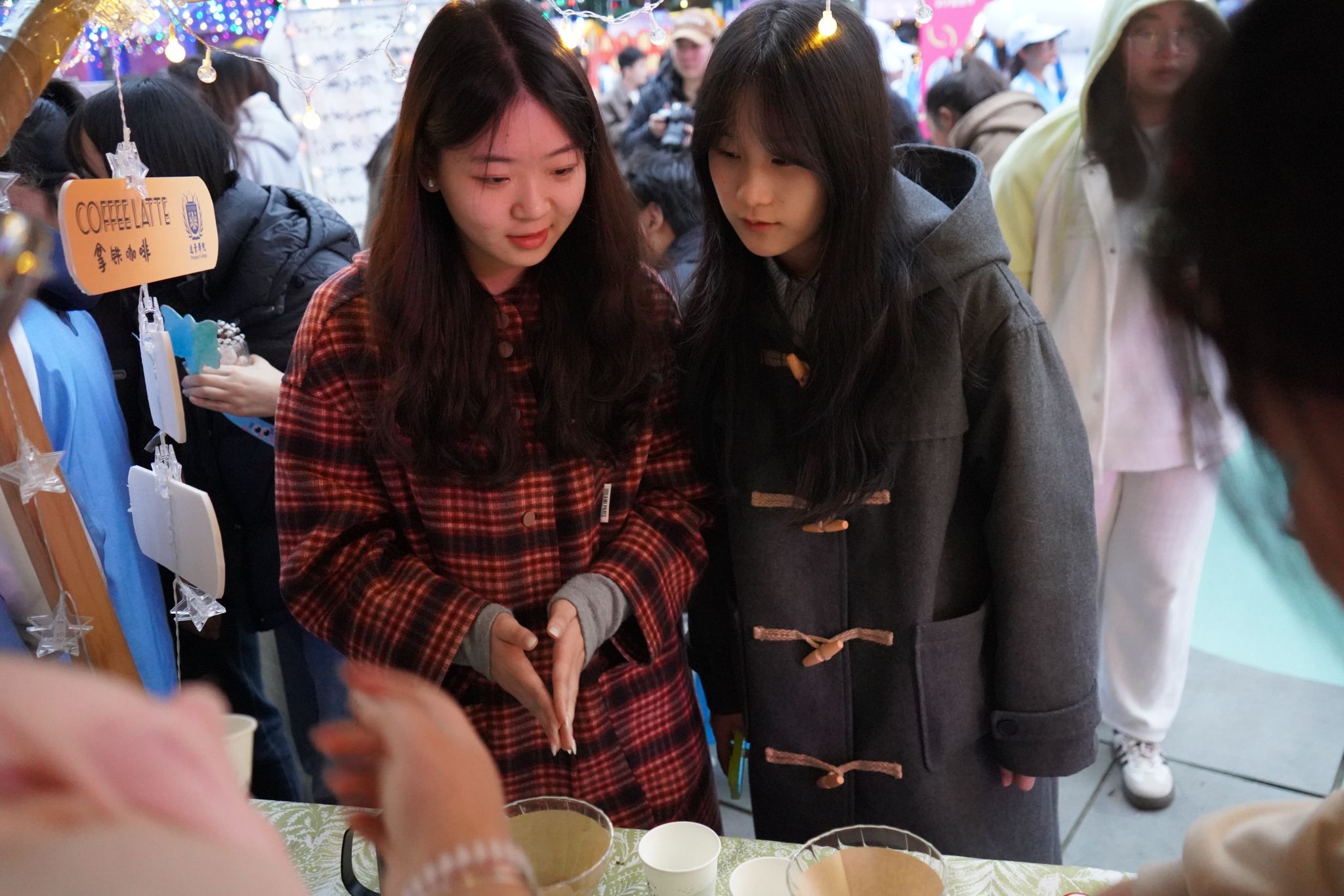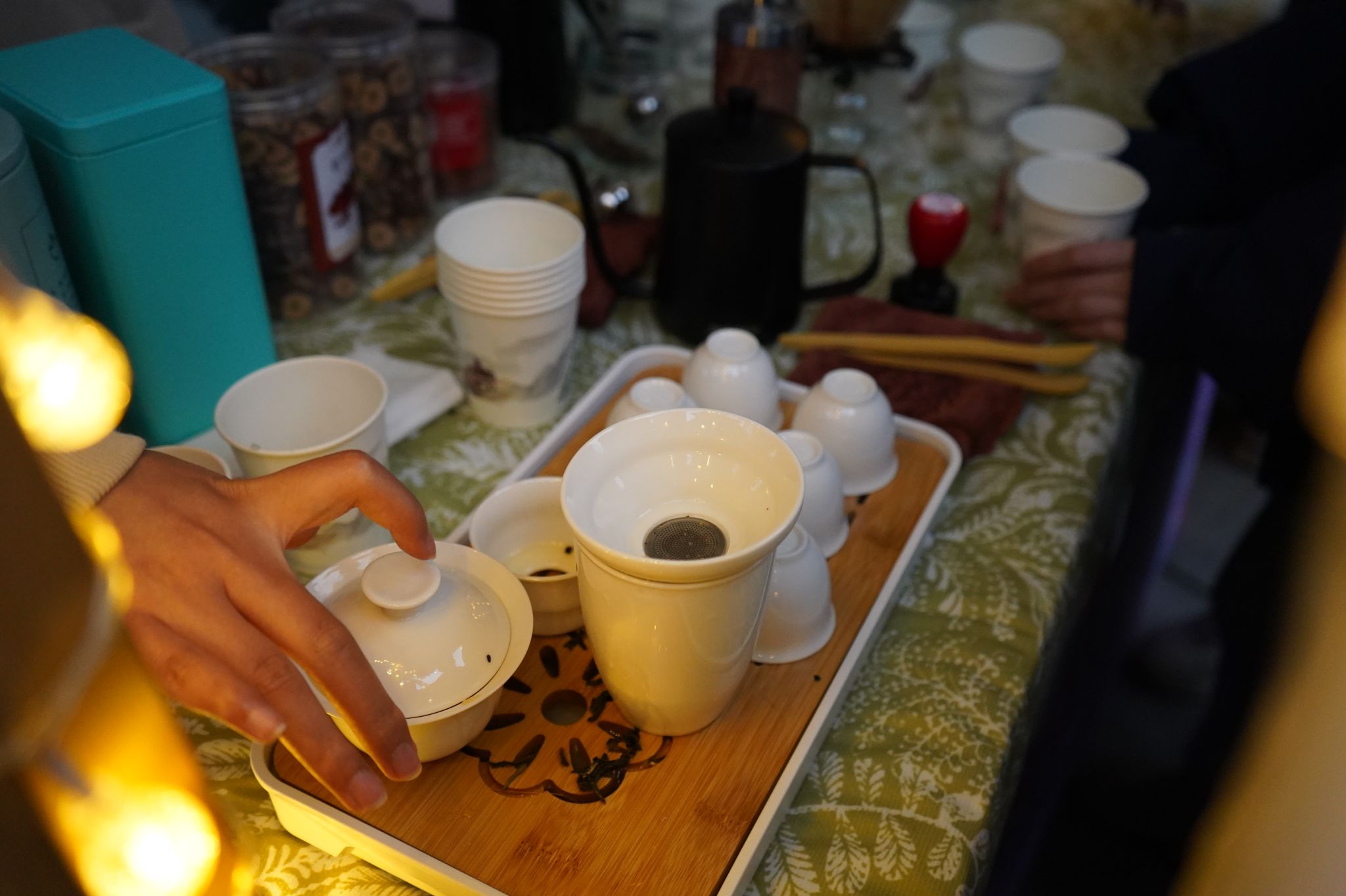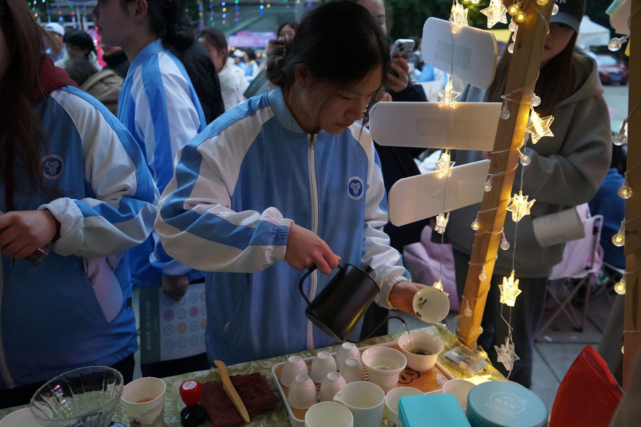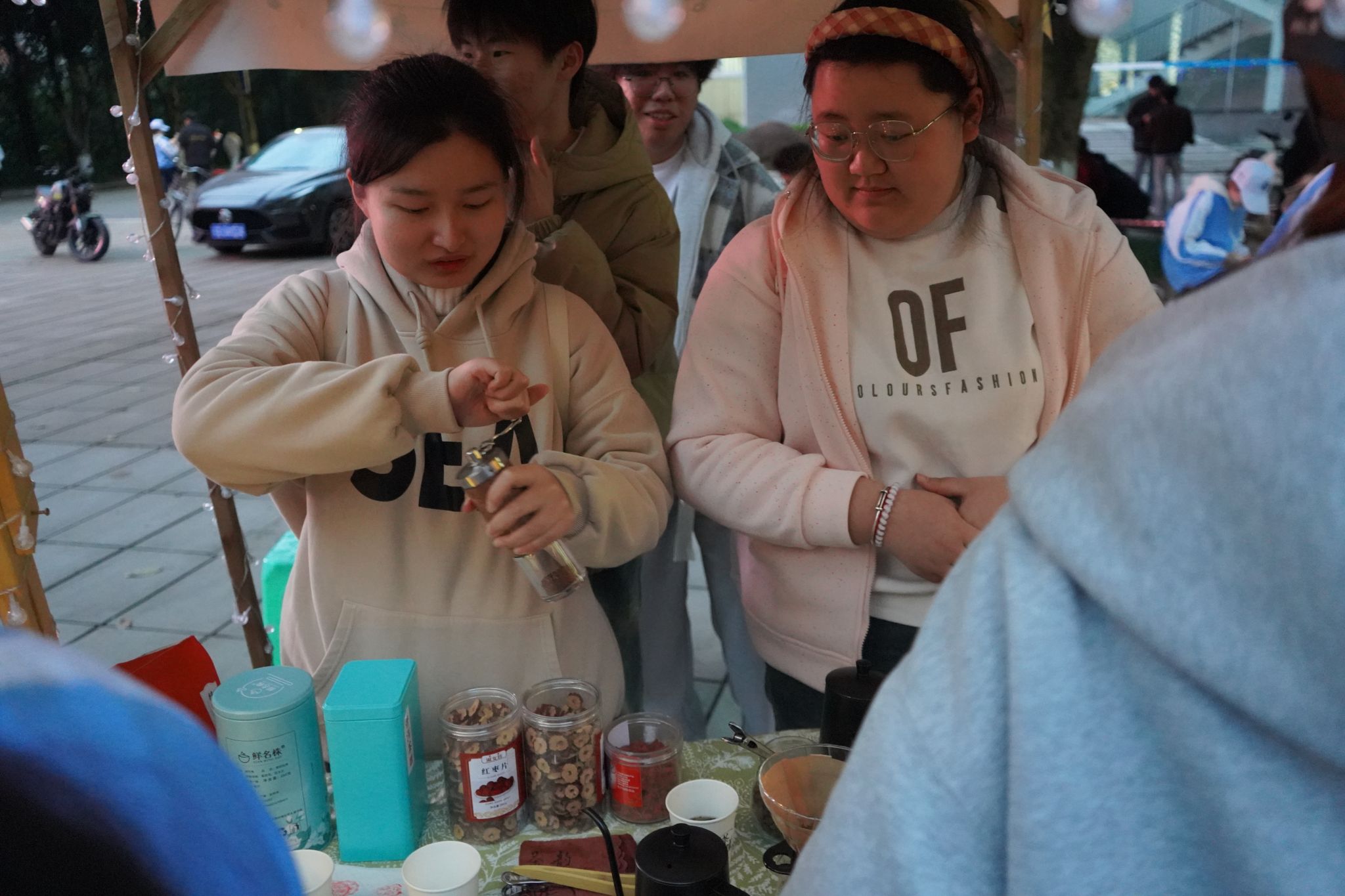 磨出自信,魅力不再“咖”带;泡出精彩,魅力一“啡”冲天;品出韵味,“茶”阅“啡”凡人生。摊位的活动吸引了众多同学的参与,现场气氛热烈欢快,大家品茗谈笑,其乐融融。同学们通过手磨咖啡和中式茶艺体验到文化的冲击与碰撞,感受中西方别样的文化风采。从西方咖啡的手磨滤泡品到东方中式茶艺的温壶投润泡品。西方的手磨咖啡文化讲究快速便捷,先磨后泡。而东方的中式茶艺展现的就是一个“雅”字,强调慢生活。讲究先闻香,再品茗。这也不难体现出东方文化对于生活的和谐宁静的态度。同学们在手磨咖啡的过程中,感受咖啡的复古魅力,根据自己对咖啡粉粗细的喜好调整自己的研磨力度或加入牛奶,是一个缓慢而专注的过程,锻炼了同学们的耐心和毅力。而在体验中式茶艺从温壶投茶润茶到泡茶倒茶品茶的过程中,同学们沉浸在东方茶艺文化之中,放下疲惫姿态,静下心来感受茶。他们尽显雅致,不仅展现中国女性的典雅之态,同时也体会到了东方文化及中式茶艺的独特魅力精髓,也感受到了生活的美好和内心的平和。
