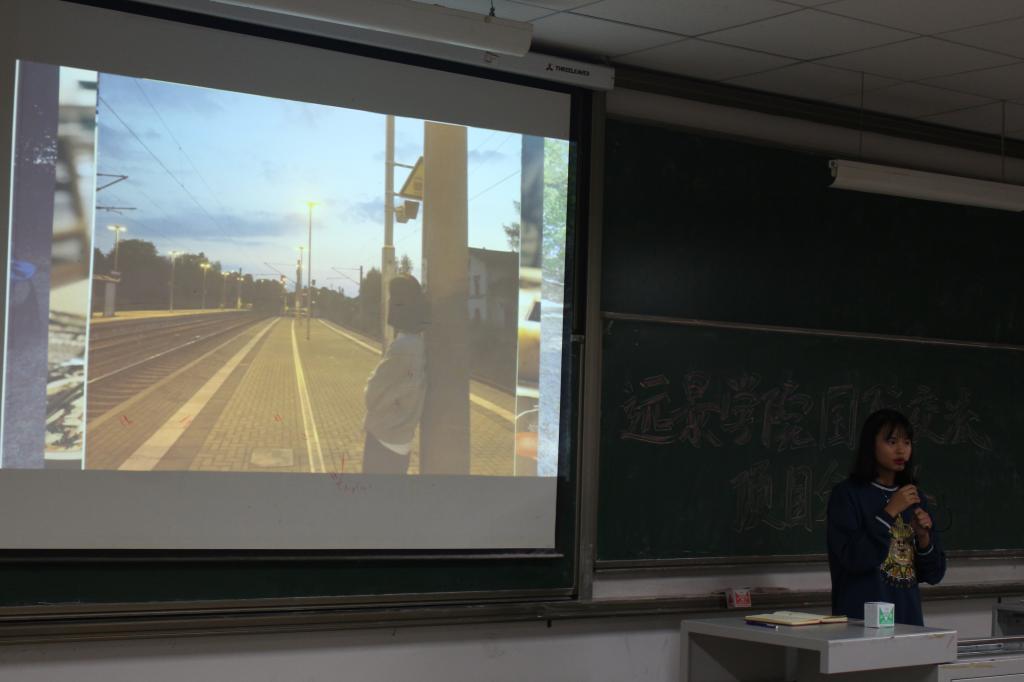 高如鑫同学主要介绍了在德国的课程,她用自己印象最为深刻的《投资课》为例谈了自己的心得和体会。她说在投资课上,老师将她们随机分为几个小组,每个小组自行成立一个大家经常加班加点计算本金和收益,她还幽默的分享了自己创业团队的过程,失败的原因等。看似一个枯燥的课程从她那里讲解出来变得十分的有趣。她激动地说每看到一张图片就想起在德国的点点滴滴,每一张图片都是一个故事,对她来说,这个经历太宝贵了。