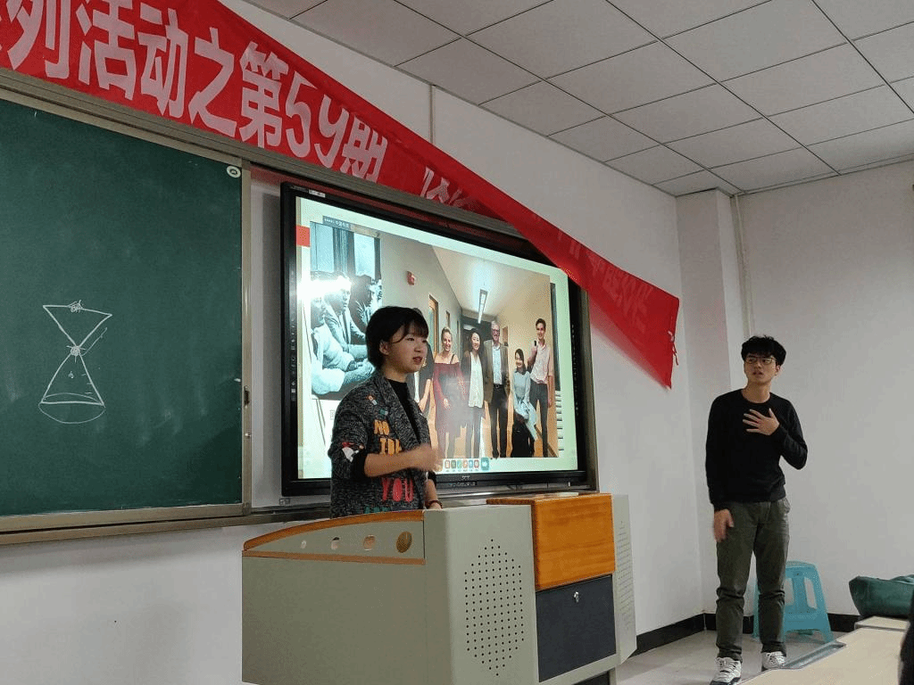 王梦窈同学参加的是北伊利诺伊大学学校海选项目,她讲解了自己在北伊利诺伊大学的学习生活,着重介绍了所学的课程。她展示了一张张课堂学习的照片,并分享了每张照片背后的一些课堂和生活趣事、让同学们知道了在北伊利诺伊大学学习的环境、学习的课程以及学习氛围等,也让同学们对北伊利诺伊大学项目有了更多的期待。