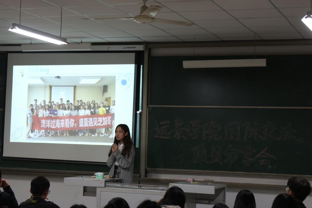 近期,我校2018-2019学年各项国际交流项目陆续上线,不仅有美国北伊利诺伊大学项目、德国F+U项目,更有哥伦比亚大学及加州大学伯克利分校顶尖名校的暑假项目。为让同学们更加深入地了解上述交流项目的意义及国外的学习生活情况,远景学院于10月25日和10月31日邀请上学年各项目参与同学面向全院举行了国际交流分享会。