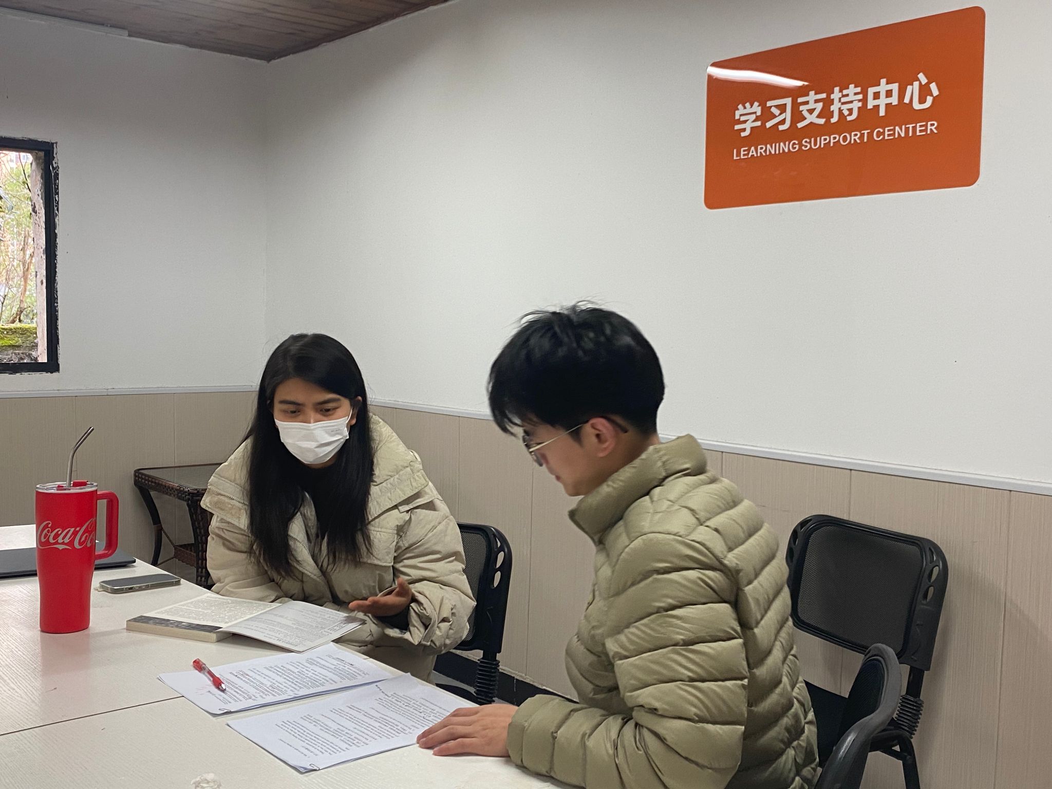 周一至周五8:00-20:40期间,学院分时段安排教师轮值,实现“早八晚八”无缝对接。学院教师们来自不同学科背景,涵盖语言、社会科学、艺术、自然科学等多个领域,组成跨学科教师团队,充分发挥各自的专业优势,为学生提供全方位、个性化的课程支持服务。教师们在菩提书院的学习支持中心(1)和学习支持中心(2)积极开展“一对一攻坚”活动,针对学生在学习过程中遇到的难点和痛点,提供精准的指导和帮助,包括但不限于:课程答疑、PPT陈述修改、演讲技巧指导、竞赛答疑、论文写作学术性和规范性指导等。
