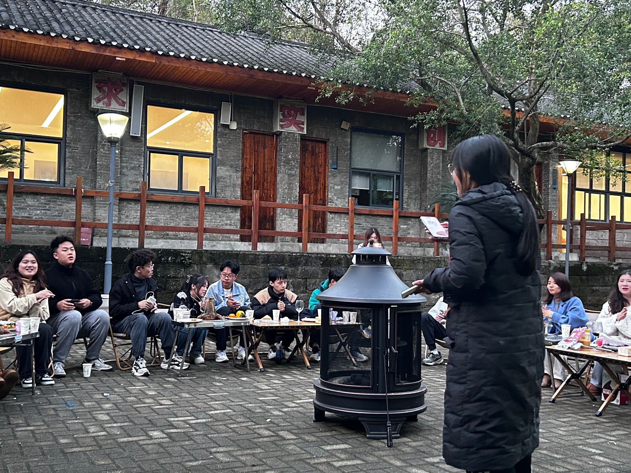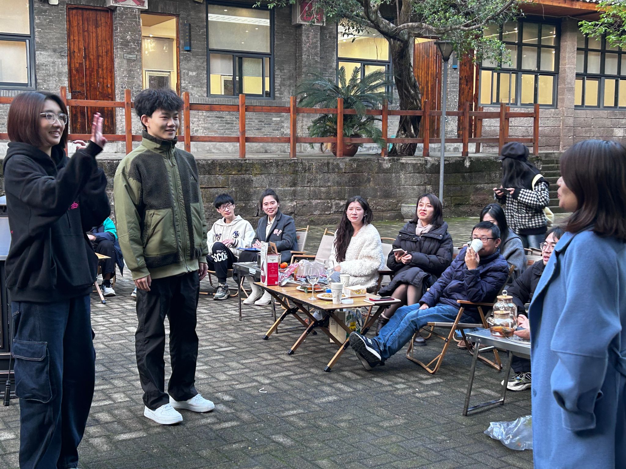 为了为师生们打造一个心灵的栖息地,并加深彼此之间的了解与沟通,远景书院于11月27日下午17时在菩提院子通过冬日煮酒、品下午茶的形式举办了11月院长共膳日活动。活动中,远景学院学工副院长李军与学生辅导员老师们围坐火炉旁,与同学们展开了热烈的交流。从“智慧对对碰”的智力碰撞,到才艺“show time”的展示环节,再到围炉煮茶的温馨时光,以及院长与同学们的亲切共谈,话题如茶香般弥漫开来,充满了整个院子。此次活动吸引了远景学院2022级、2023级和2024级的同学们积极参与。以下午茶为媒介,这场活动为师生们搭建起了一座心灵沟通的桥梁。在霜华初降的季节里,它营造出了一种温暖而充满文化韵味的交流氛围,让师生们在轻松愉快的氛围中感受到了学院的关怀和期望。