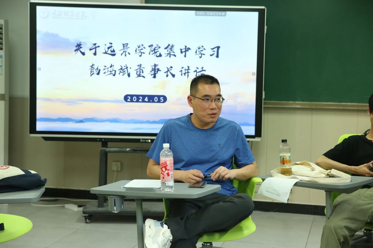 为深刻领会董事长彭鸿斌博士一系列重要的教育观点和原创性的教育理念,进一步推动教师对学校“四位一体双院制”人才培养模式、“致力于未来成为双一流之外的首选大学” 办学目标的深刻理解。5月24日,远景学院组织教职工于菩提普通教室五开展彭洪斌董事长讲话学习,为确保学习和贯彻工作取得实效,本次学院采取统一学习的方式进行。