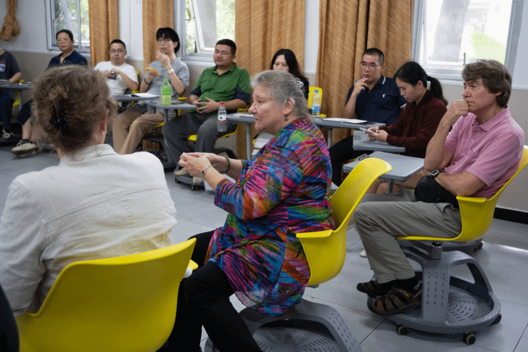 作为远景学院第一任院长,南微莉教授一直对远景学院的发展十分关注,她抽空与远景学院管理团队进行了交流。她分享自己对管理的理解,提醒大家注重团队合作和协作,与基层教师建立起良好的沟通机制和合作模式,共同探讨和解决教学管理中的各种问题和挑战,推动远景的快速发展。她以自己现在加州大学全球合作机构的工作举例,她管辖着在全球超过150位的工作人员和超过7500名的学生,对这样庞大的机构进行管理,最重要的是学会倾听,了解员工、老师、学生真正需要什么,什么是他们所关注的、在意的。她希望大家依然能保持初心,远景学院的根基是学生,需要持续注重培养学生的综合素质和全面发展,关注学生的兴趣和特长,为他们提供个性化的教学和培养方案,让每个学生都能发挥出自己的潜力和才能。