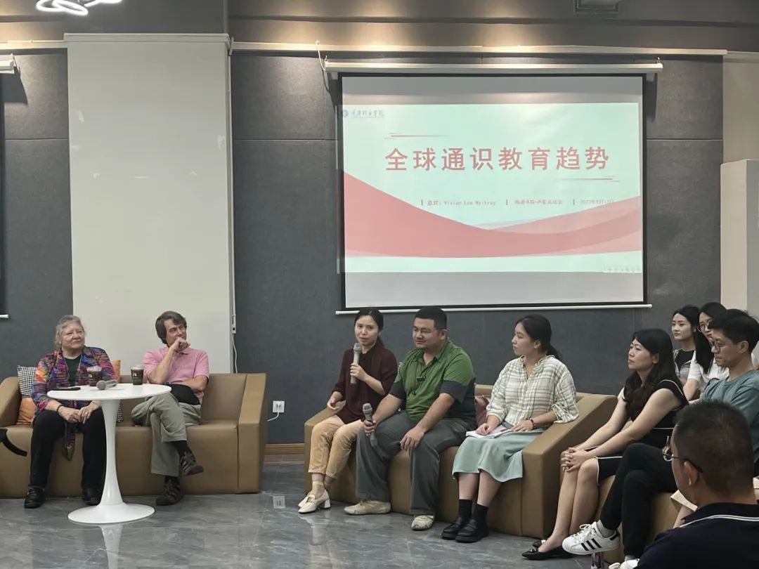 南教授首先表明,她认为通识教育的全球趋势就是能够将不同专业背景的人集合起来,大家相互学习,共建课程,在跨学科交流的过程中实现互补,达到共同进步的目的。比如她谈到:“通识教育让我们变得更包容更理性,我们将看到世界各种人和行为,有的可能看似很难理解,当我们可以从各个学科去分析,就会变得更有理解力和判断力。如果我们从单一学科角度分析,我们的世界就会越来越小,我们的视野就会越来越小,那么我们的认知也会越来越狭窄;而从不同学科的角度进行分析的时候,会有多种的解释,它不仅是答案,它也没有标准答案,但它可以有解决的办法,我们只有一个地球,我们需要从不同角度理解它,才能更好保护它。” Douglas认为通识教育的大趋势就是跨学科,他结合自己从人文学科转到艺术类学科再到语言学的经历,为大家分享了跨学科思维在教学和学习中的重要性,它会不断帮助你扩展你本专业的宽度和广度,让你发现你的更多可能。Shady分享了自己的通识教育经历,她毕业后成为一名记者,这份工作需要她去和不同专业、不同的领域的人打交道,她意识到以前在大学里面有宽度的通识知识的积累,能够帮助她提升工作的效率与水平。John表示,作为一名考古学家,除了需要具备专业的考古知识外,还需要具备生物、地理等知识,而这些知识在他的学习经历中都是通识教育带给他的,在他作为学生的时候并不能第一时间感受到它的效用,但是,他工作以后,能将跨学科知识融会贯通,灵活使用,并受到同事赞赏的时候,他在通识教育中的获得感与成就感进一步提升。