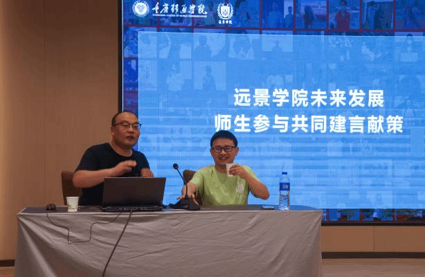 职场交流讲座结束后,随之开展了一场“远景荣誉生训练营交流会”,远景学院副院长李军就大咖讲座与大家进行了总结交流。此次为期两天的专家讲座不仅为大学生们提供了实用的求职经验,也为他们搭建了一个广阔的交流平台,与业界专业人士进行面对面的互动和交流。通过参与训练营和就业讲座,同学们更加明确了自己的职业规划,对未来的就业有了更清晰的认识。他强调,作为远景学子,我们应该知道远景学院的培养理念是什么,我们需要做一个有理想的浪漫主义者而不要当精致的利己主义者!同时也和强杨副院长一起与现场同学深入交流,从远景学院的人才培养到学生活动的意见与建议与同学们都进行了相应的沟通。