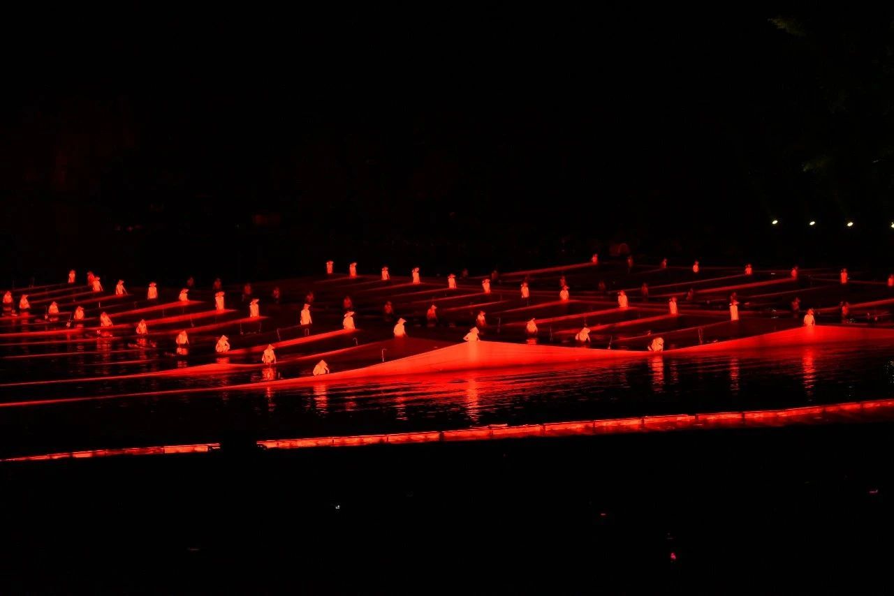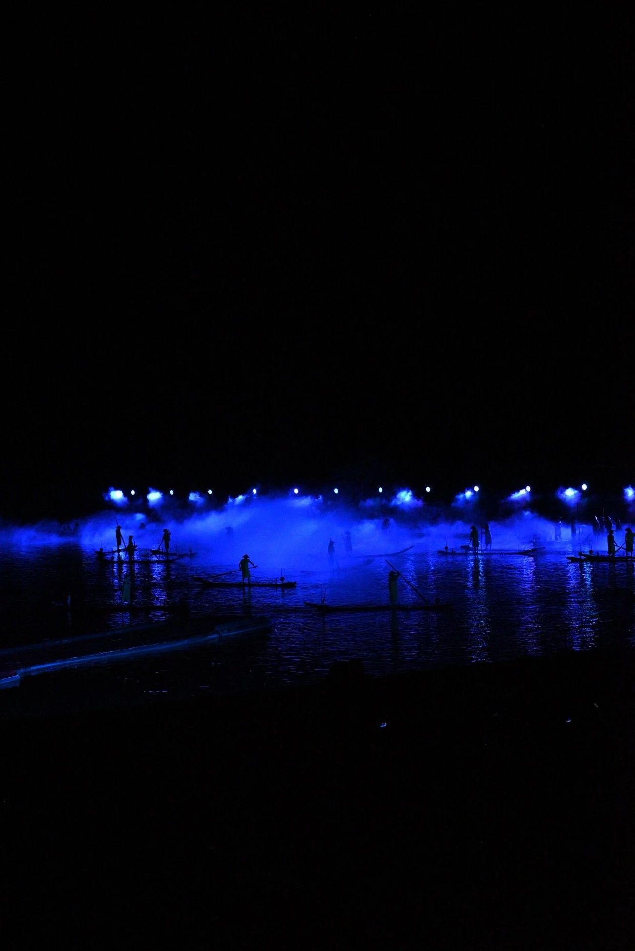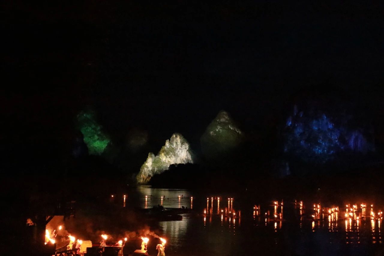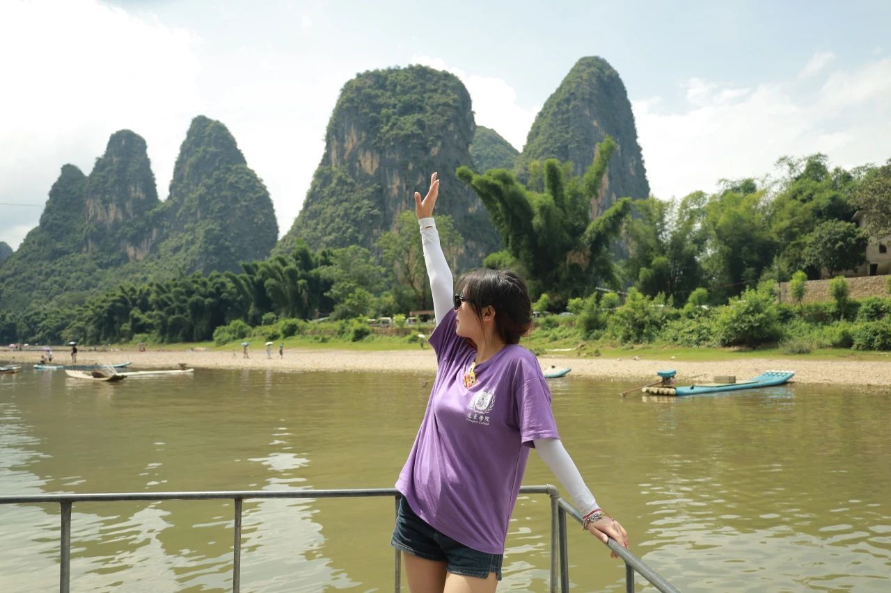 《印象·刘三姐》大型实景演出中运用中国国画的构图与手法融入真山真水,结合少数民族歌曲的独特节奏与韵调,将漓江沿岸的自然风景、渔民村民的生活劳作、少数民族的民俗风情等,通过视觉效果和艺术编排进行融合与呈现。让同学们感受到了深深的震撼与感动,不仅为山水之间、明月之下的自然之歌舞,更是被人与自然和谐的关系与天人合一的境界所折服。