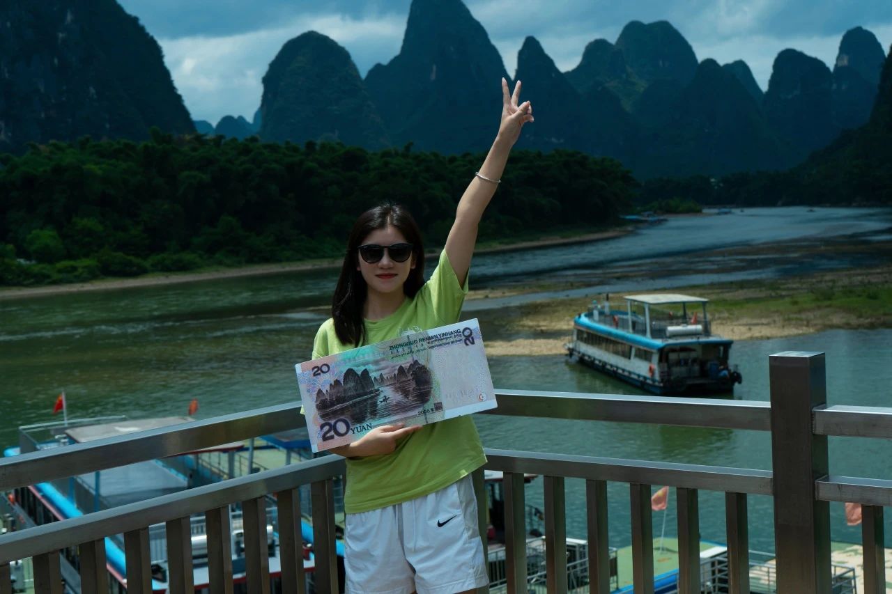 还记得小学课文《桂林山水》吗?乘船于漓江之上,随处可见重峦叠嶂的青山,江边的草地,还能闻到阵阵江风带来的清香,亲身感受“人在天上走,船在画中游。”的神奇仙境。人民币20元的背面图案,正是漓江山水的一段,远景学子们坐着游船沿着漓江顺流而过,期待着奇幻的卡斯特地貌赋予多重的色彩和形状,一路行来去寻找“20块人民币”的风景,感受 “船上青山顶上行”的意境。