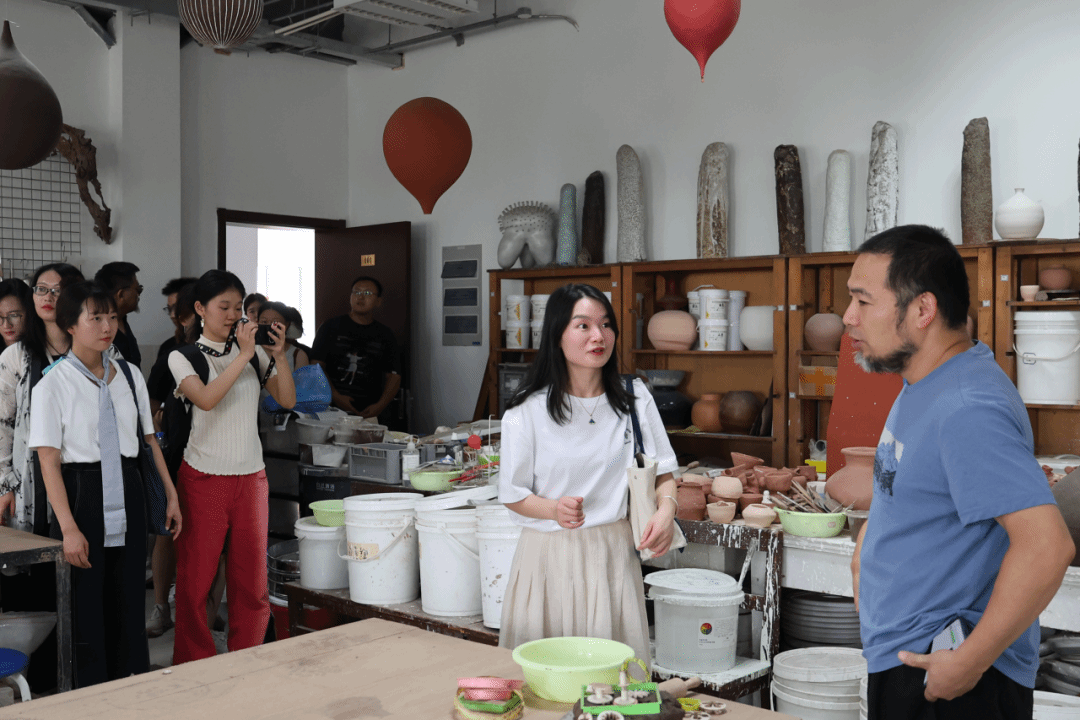 在理论培训之后,老师们前往了复旦大学,正式拉开研学之旅。作为国内通识教育的先行者,复旦大学的校史馆详细记录了其发展历程。馆内展有千余幅图片,呈现了复旦大学百余年发展的缩影。大家在讲解员的细致介绍下,了解到复旦历任校长和杰出校友前辈们的奋斗故事,以及复旦大学从创立、迁址、从一所海派私立大学转为公立大学、从院系调整到全面通识教育的发展历程。在参观过程中,老师们深刻了解到复旦取得现有成就的来之不易,体会到了各位有志之士的奉献精神。复旦大学博物馆现有藏品约两千多件,包括各种陶瓷器、青铜器、甲骨、书画、台湾原住民文物等各类艺术珍品。老师们在古朴典雅的建筑中感受着人类文明的精度与温度。此外,老师们还前往了陶艺馆、书院进行参观学习。在参观陶艺馆进行的研学活动中,通过包春雷老师艺术教学实践分享,大家也感受到了通过陶艺课堂实践传递出的美育理念。