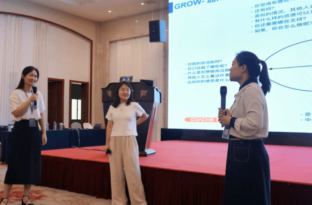 中国新商科大学集团“博雅计划——2023年暑期通识骨干培训会”的内部提升与双师切磋环节,可谓精彩纷呈。由中国新商科大学集团董事会秘书戴苏带来的“GROW提问机制”给予会老师带来了重新规划工作与生活的有效思考模型,她通过“为什么提问那么重要”“为什么提问那么难”“有哪些提问类”等问题,引导大家共同导出“GROW”提问模式。为了更好厘清GROW模型的运行机制,透过现象找寻本质,在会议学习现场来自泰山科技学院通识教学部的刘会主任带着“我想要早点睡觉但总是熬夜怎么办”问题,与主讲人戴苏进行了示范。戴苏老师指出,通过这种引导式提问的方式进行自我剖析和解释后,能够增强其自我价值感与自我认同感,并激发出提问者的潜能。