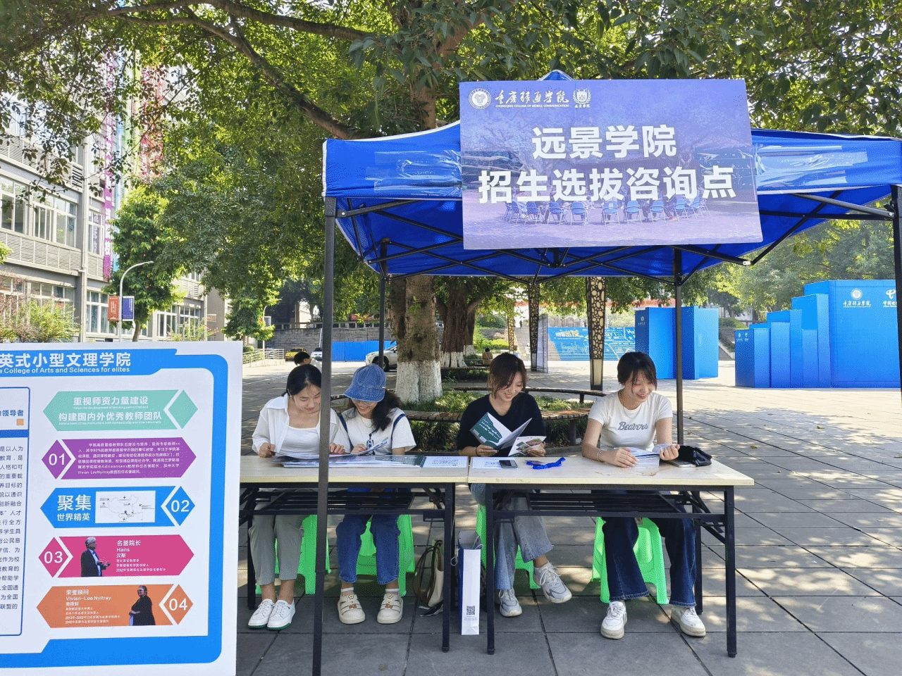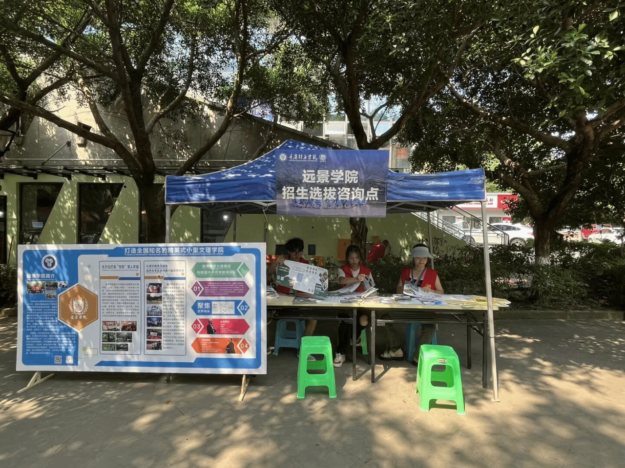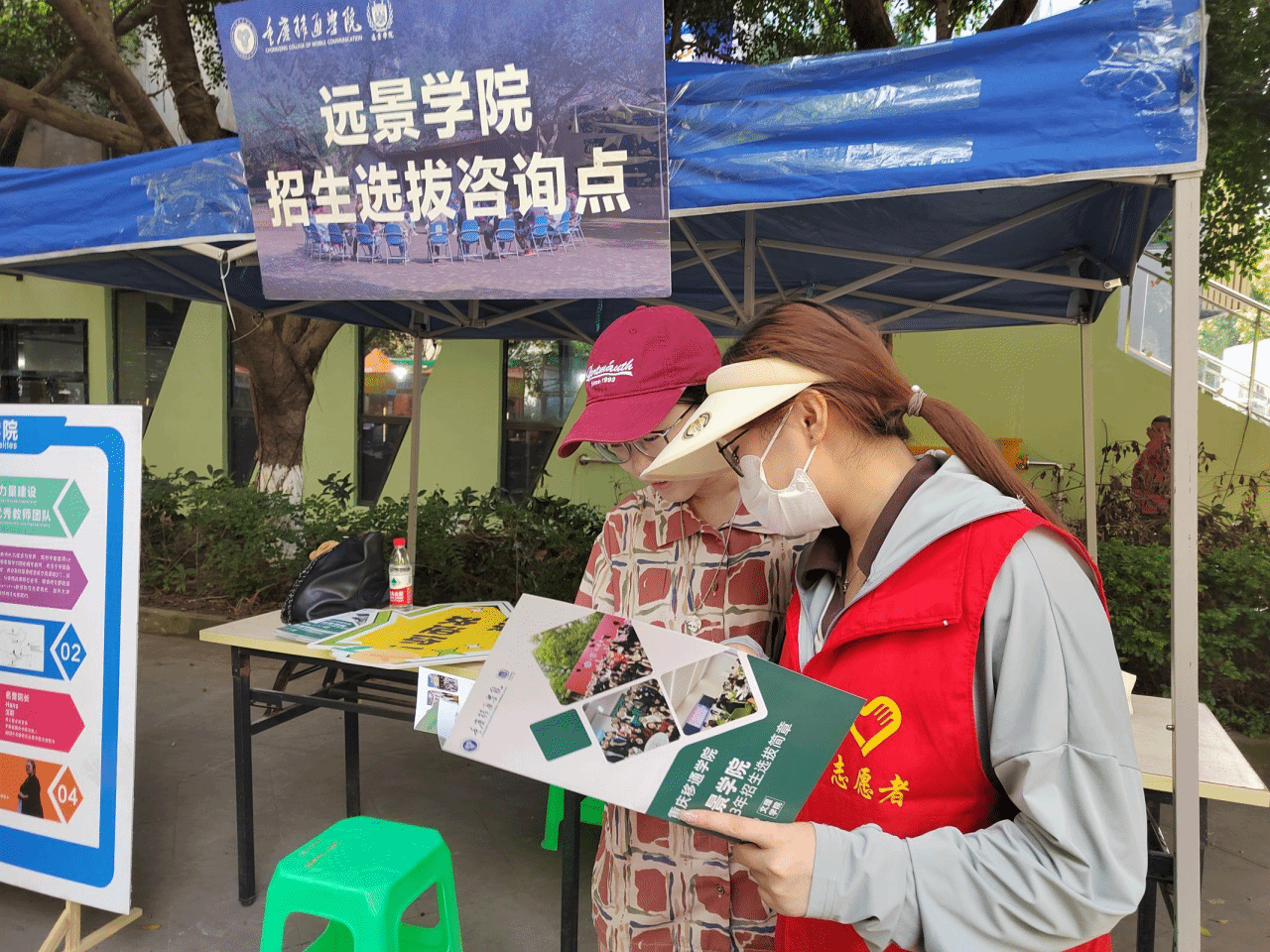 在开学之初,远景学院师生志愿者通过扎点驻营、线上答疑、派发学院宣传手册,线上线下相结合,面对面、一对一就学院招生政策、学院概况、学院特色等具体情况与新生和家长进行细致解答与充分交流,极大地激发了新生、家长的咨询热情,提升了新生及家长对远景学院所打造的精英式小型文理学院的认知度。