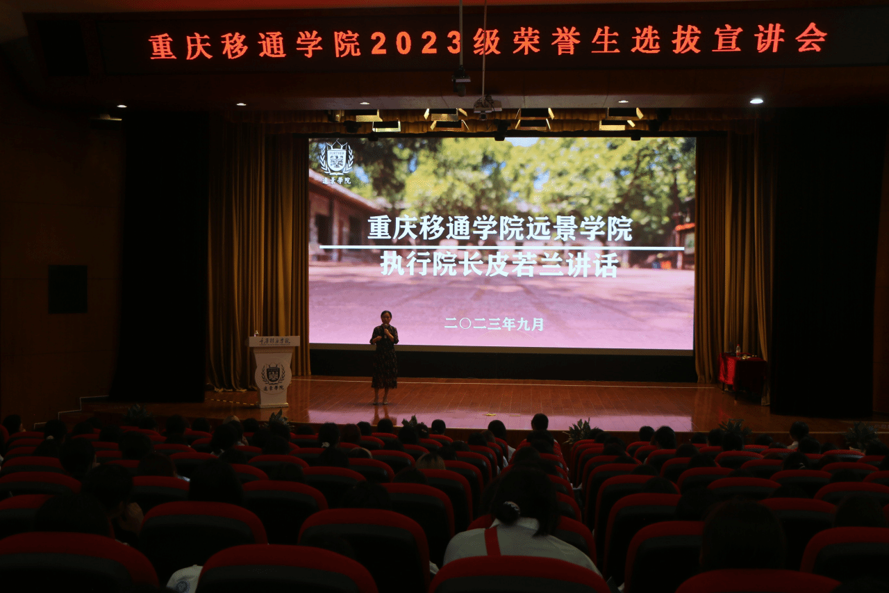 星光不负赶路人,江河眷顾奋楫者。九月又一秋,学校迎来了2023级新生,为了促进新生对学校远景学院特色教育、办学模式、人才培养模式的了解,熟知选拔流程及报名方式,綦江校区、合川校区远景学院分别于9月3日、9月5日在綦江与合川双校区面向全体新生隆重举行了一年一度的荣誉生选拔宣讲会。此次宣讲会双校区共举行9场,实现7000余名新生全覆盖,得到了学校以及各二级学院的大力支持,远景学院执行院长皮若兰、李军副院长、强杨副院长以及导师代表、优秀校友代表、优秀学生代表参与了宣讲。