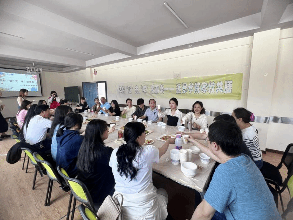 为增进家校交流,中午家长和孩子们在远景书院包饺子,同老师们共膳,深入交流。共膳期间,举杯相邀,热情畅聊,氛围惬意舒服,父母品尝着孩子亲手包的饺子,在学校里品尝家的味道。