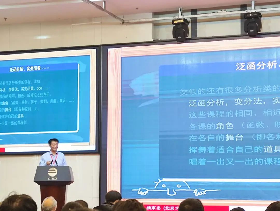 杨家忠教授则以其丰富的教学经验,为与会者带来了针对《数学分析》课程的教学体会和思考。他巧妙地将教学比作编排舞台剧,探讨了分析类课程的教学结构和方法。通过多个生动的教学实例,杨教授引导教师们思考如何有效地教授理论性强的基础课程,激发学生的学习兴趣和参与热情。